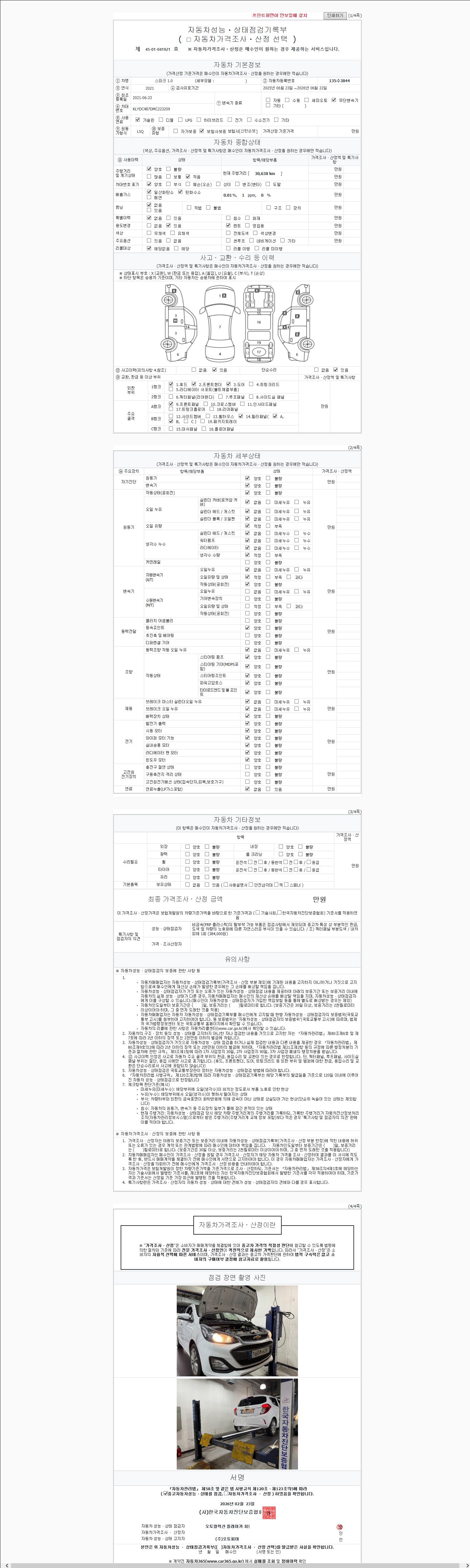 - 2. 차량 등록증이나 성능점검지 등을 상담자에게 요청및 확인하시고 사전에 미리 점검 하시기를 권유드립니다.