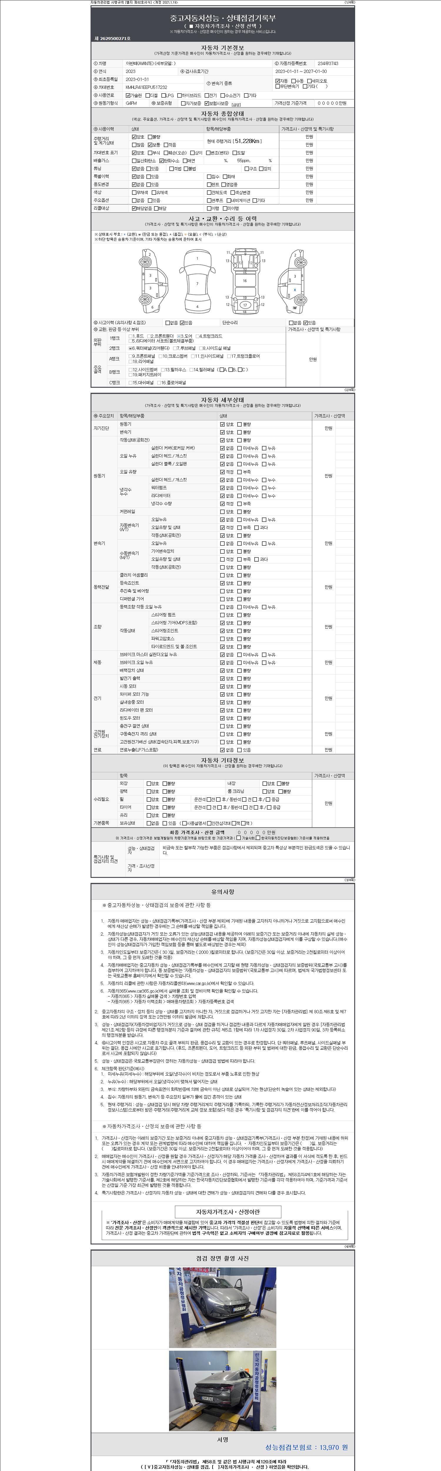 - 2. 차량 등록증이나 성능점검지 등을 상담자에게 요청및 확인하시고 사전에 미리 점검 하시기를 권유드립니다.