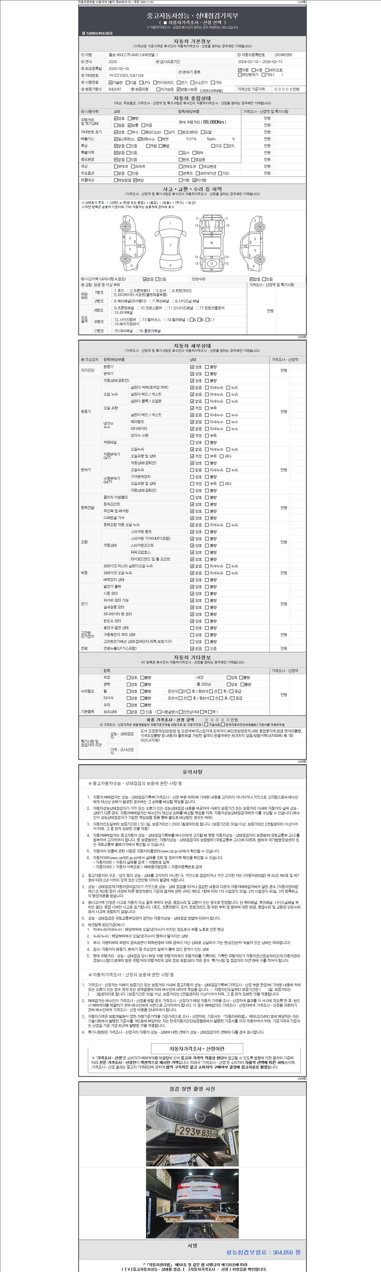 | 주행거리 | 89,080 km | 차량번호 | 293부8356 | 사고유무 | 성능기록부 참조 | 제시번호 | 제 2147483647 호 |