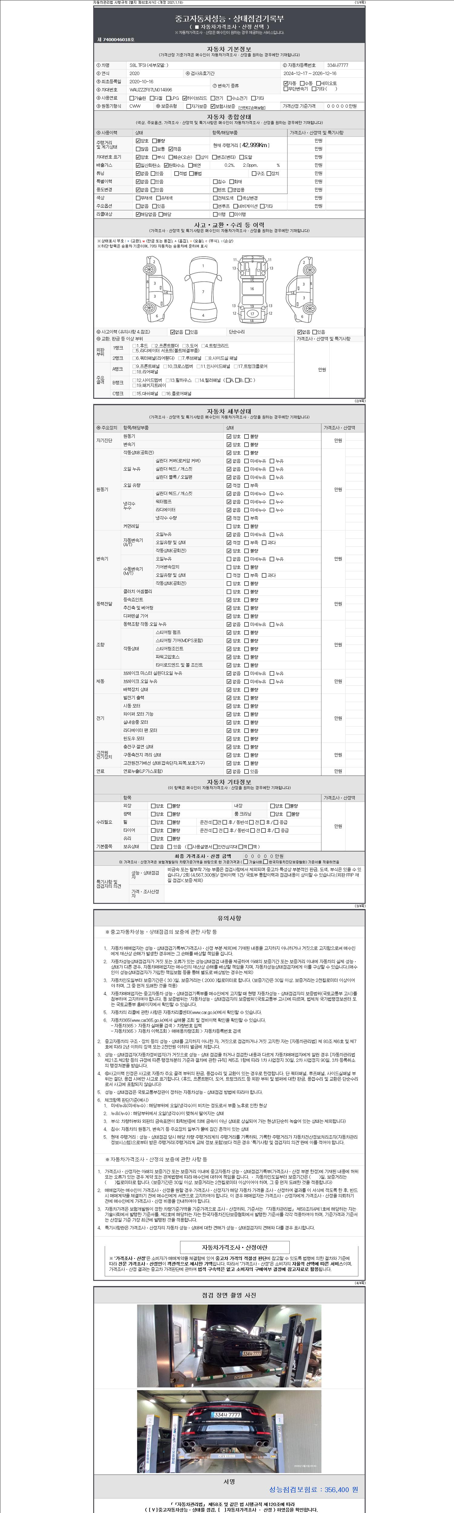 - 2. 차량 등록증이나 성능점검지 등을 상담자에게 요청및 확인하시고 사전에 미리 점검 하시기를 권유드립니다.