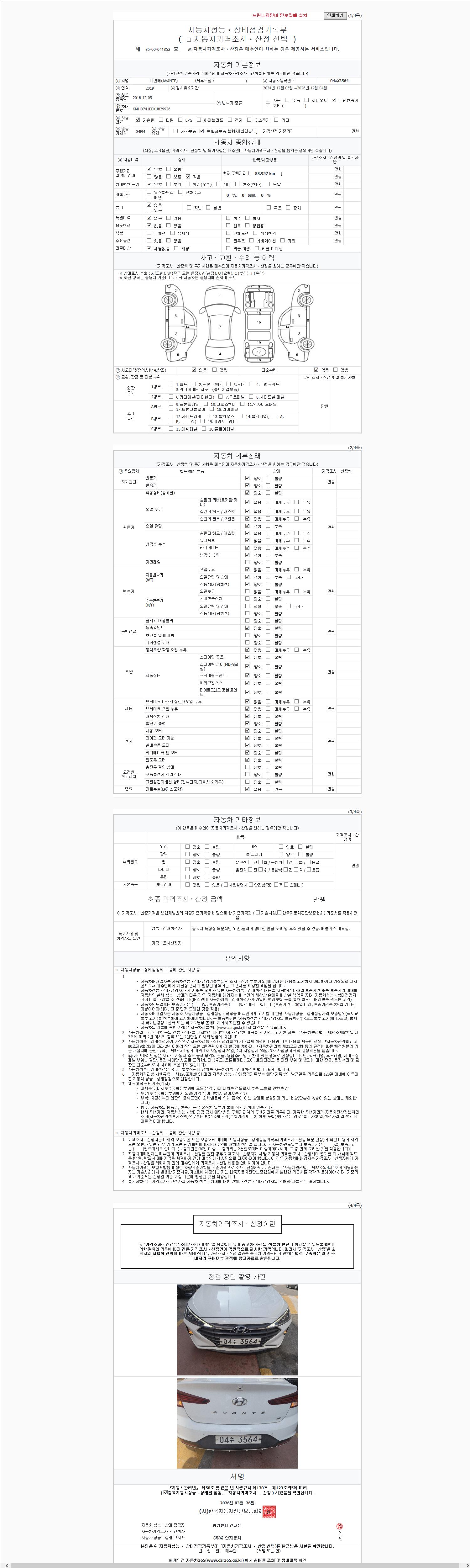 | 주행거리 | 88,957 km | 차량번호 | 04수3564 | 사고유무 | 성능기록부 참조 | 제시번호 | 제 2147483647 호 |