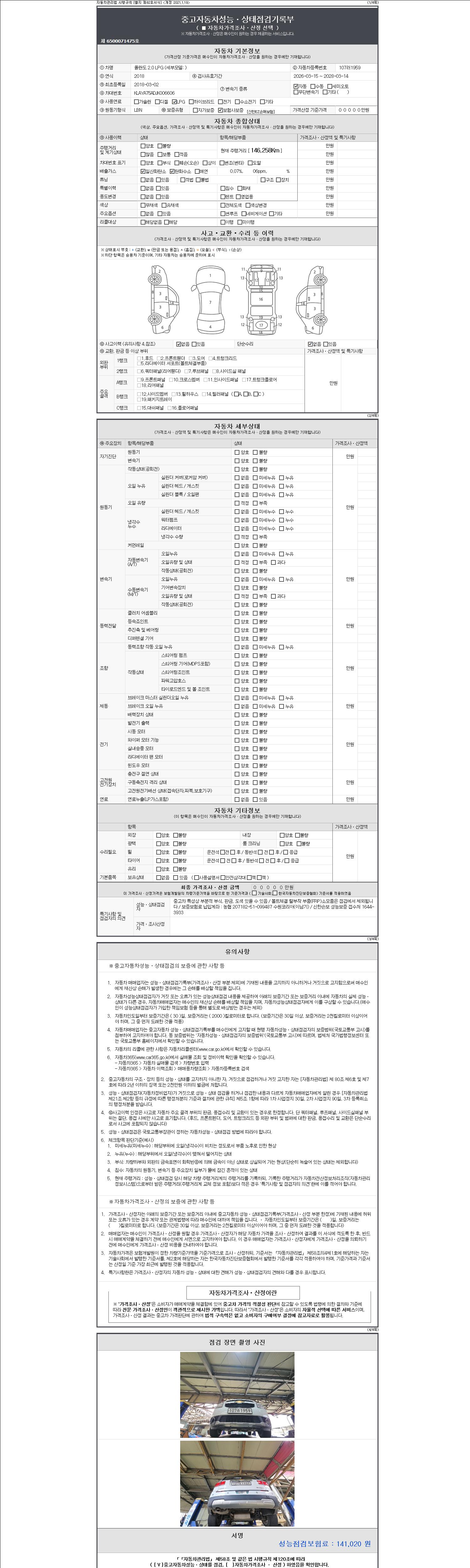 | 주행거리 | 146,258 km | 차량번호 | 107러1959 | 사고유무 | 성능기록부 참조 | 제시번호 | 제 2147483647 호 |