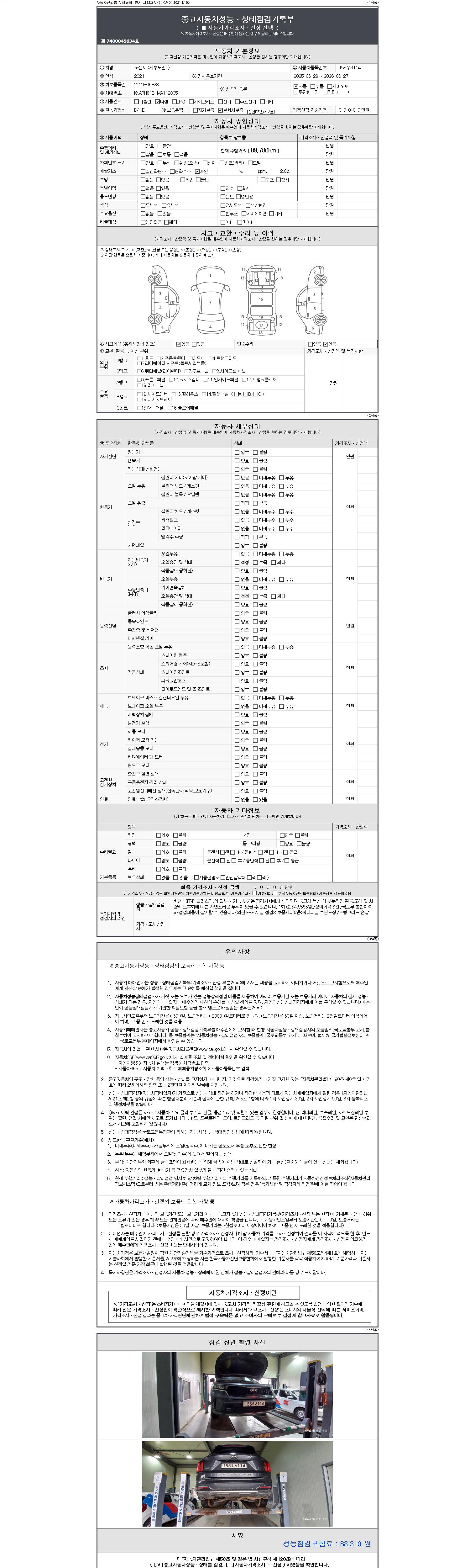 - 2. 차량 등록증이나 성능점검지 등을 상담자에게 요청및 확인하시고 사전에 미리 점검 하시기를 권유드립니다.