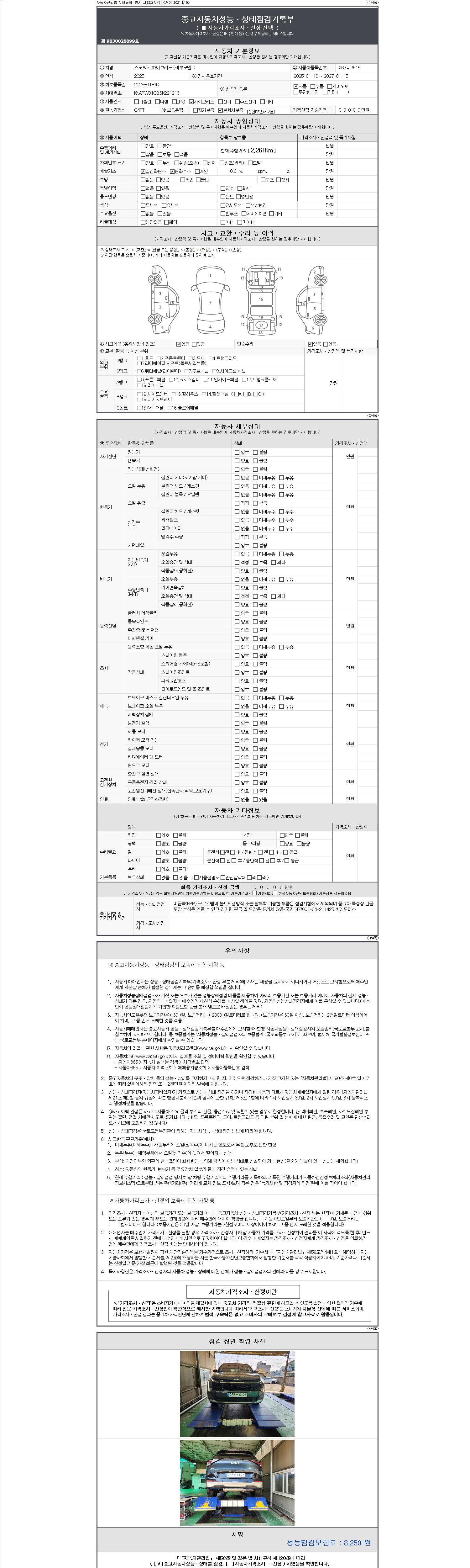 - 사고유무 : 성능기록부 참조