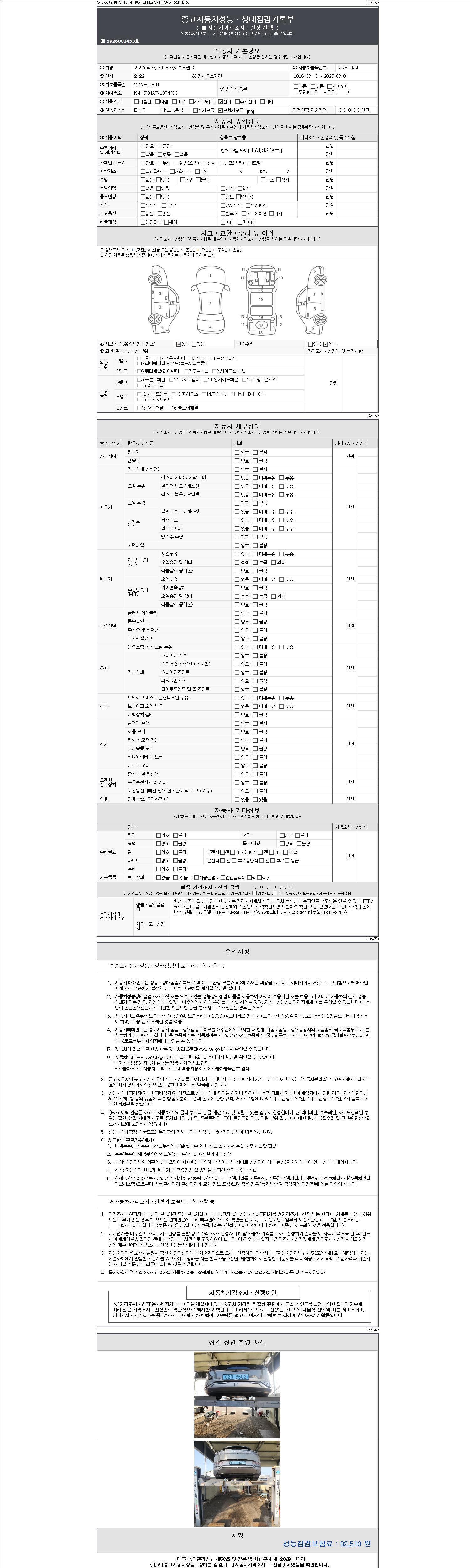 - 2. 차량 등록증이나 성능점검지 등을 상담자에게 요청및 확인하시고 사전에 미리 점검 하시기를 권유드립니다.