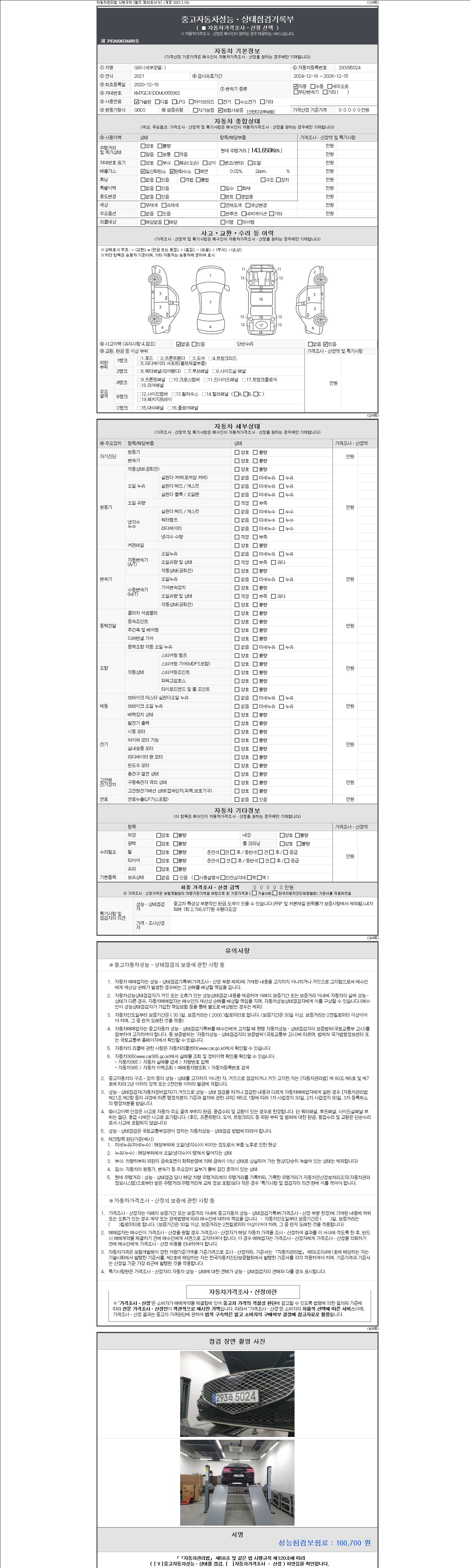 | 주행거리 | 143,650 km | 차량번호 | 293라5024 | 사고유무 | 성능기록부 참조 | 제시번호 | 제 2147483647 호 |