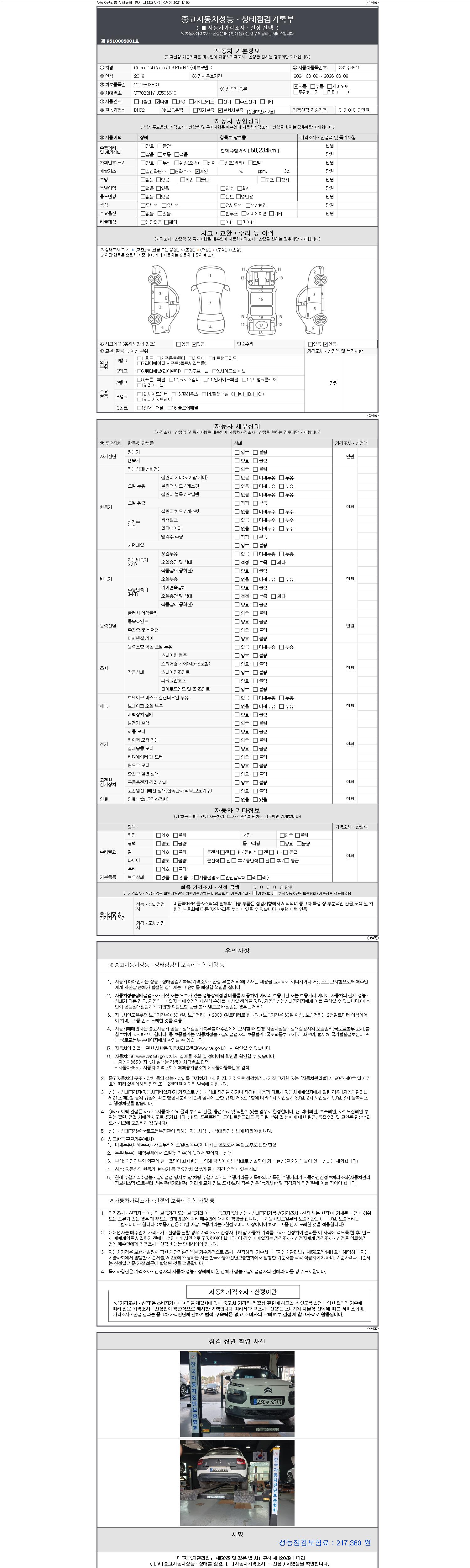 - 2. 차량 등록증이나 성능점검지 등을 상담자에게 요청및 확인하시고 사전에 미리 점검 하시기를 권유드립니다.