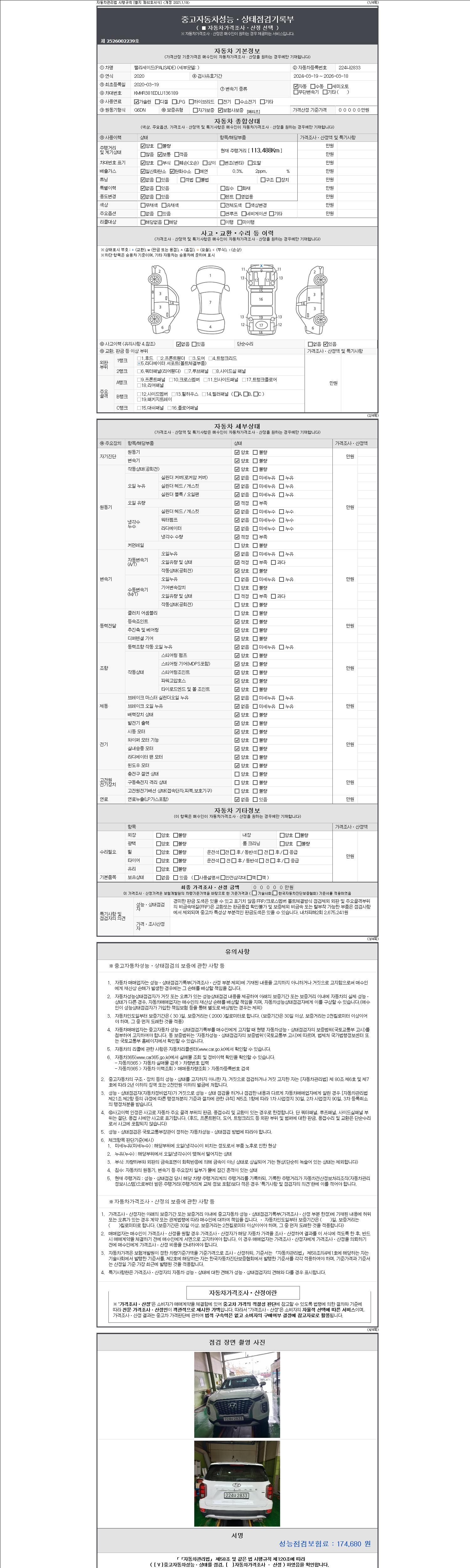 | 주행거리 | 113,488 km | 차량번호 | 224나2833 | 사고유무 | 성능기록부 참조 | 제시번호 | 제 2147483647 호 |