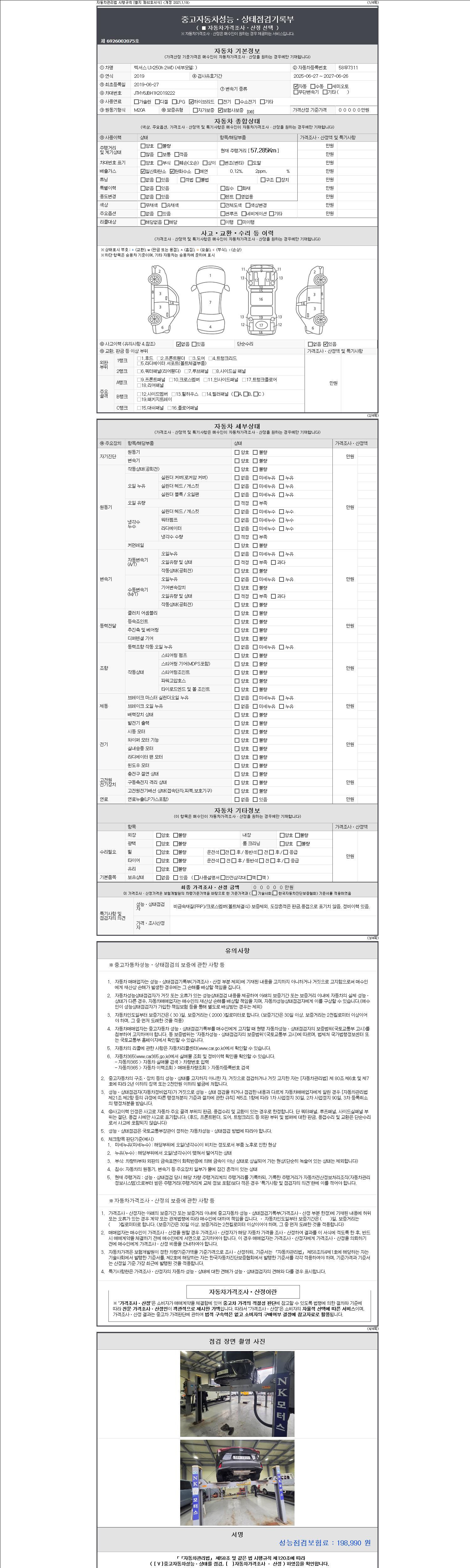 - 2. 차량 등록증이나 성능점검지 등을 상담자에게 요청및 확인하시고 사전에 미리 점검 하시기를 권유드립니다.
