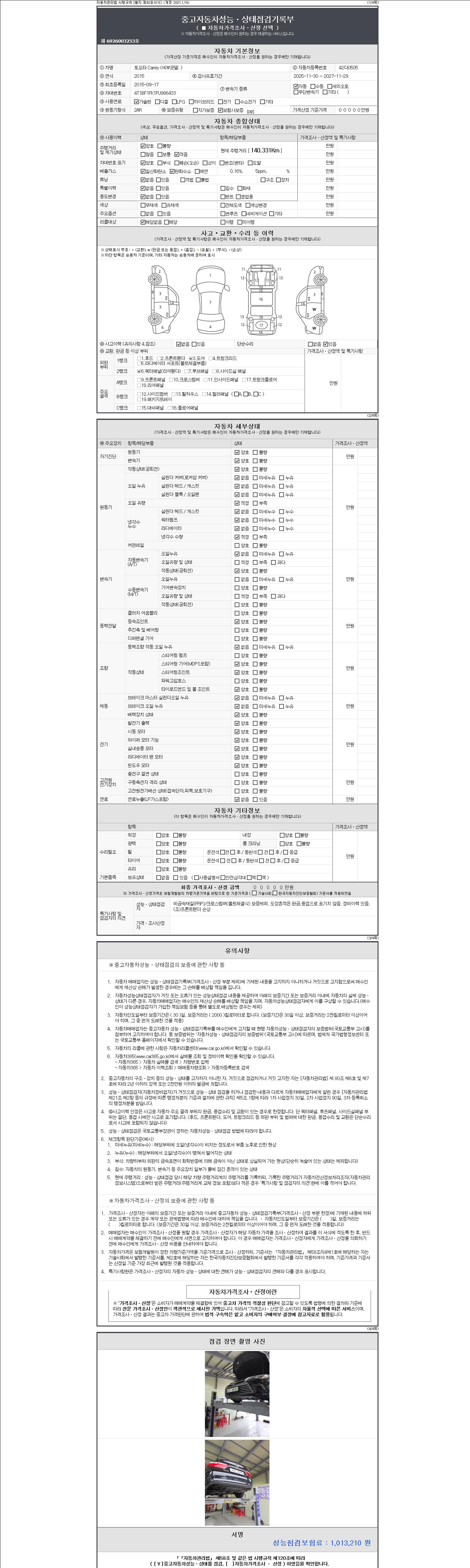 - 2. 차량 등록증이나 성능점검지 등을 상담자에게 요청및 확인하시고 사전에 미리 점검 하시기를 권유드립니다.