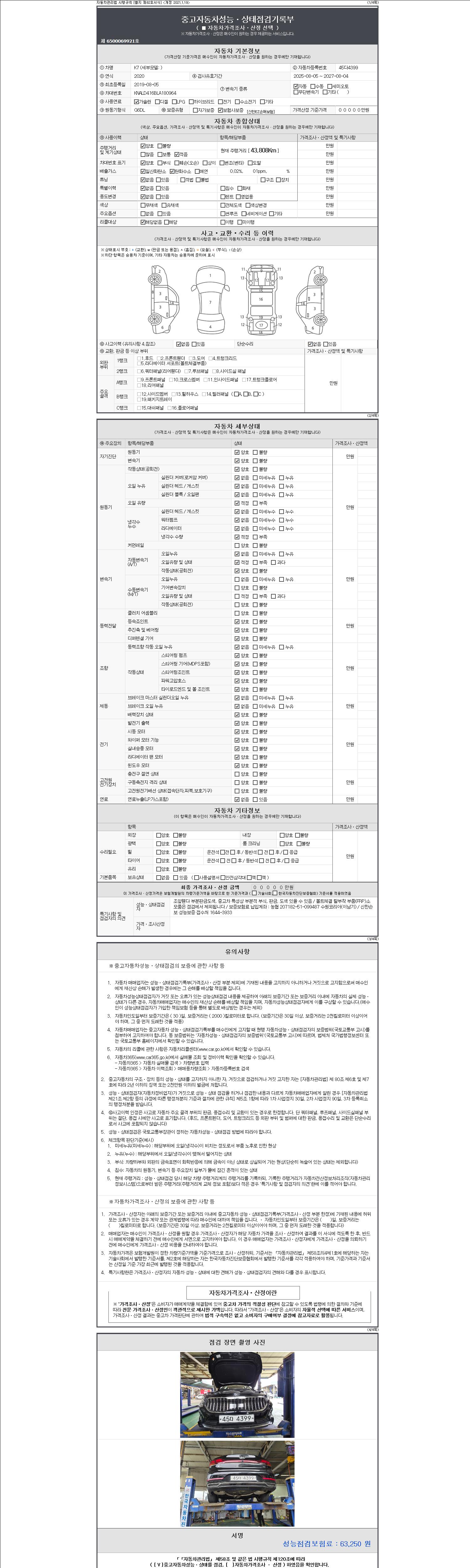 - 2. 차량 등록증이나 성능점검지 등을 상담자에게 요청및 확인하시고 사전에 미리 점검 하시기를 권유드립니다.