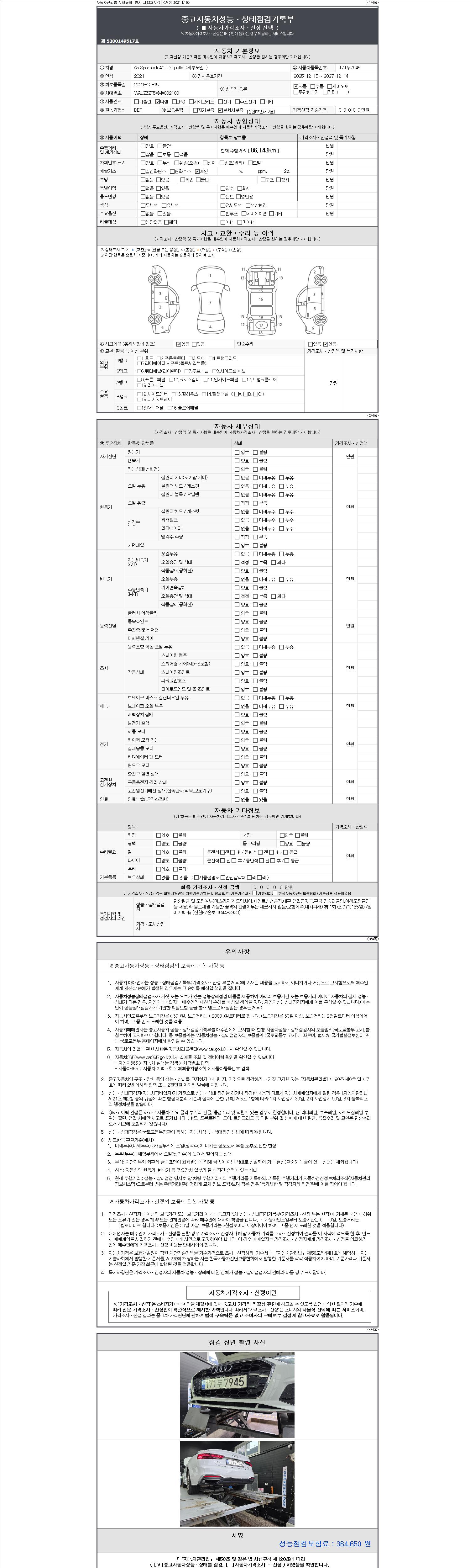- 2. 차량 등록증이나 성능점검지 등을 상담자에게 요청및 확인하시고 사전에 미리 점검 하시기를 권유드립니다.