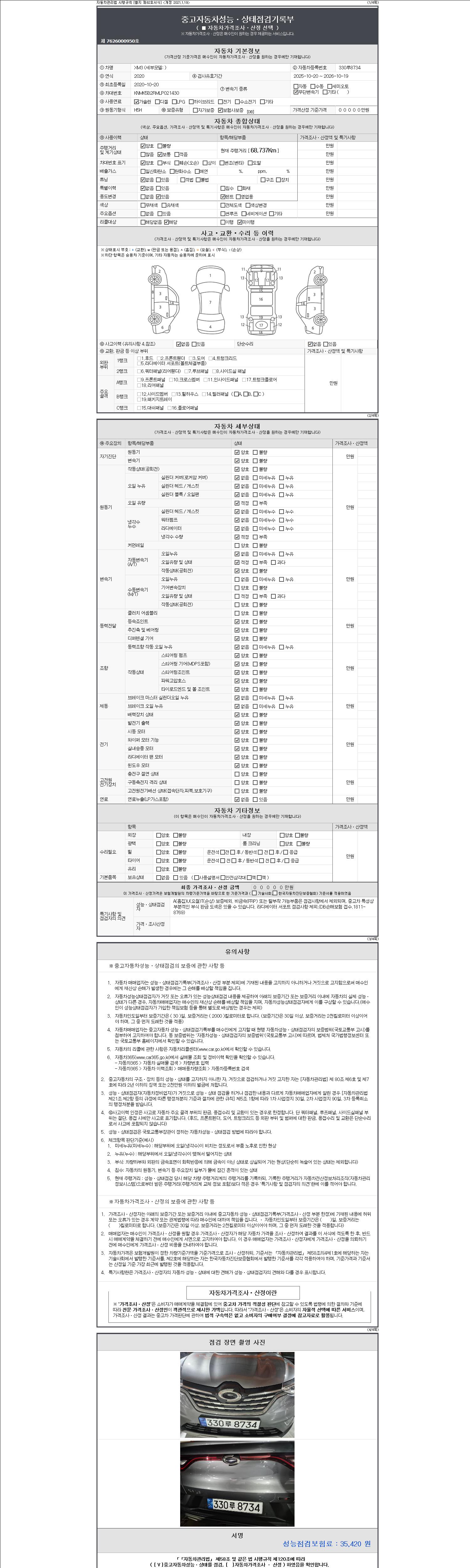 - 2. 차량 등록증이나 성능점검지 등을 상담자에게 요청및 확인하시고 사전에 미리 점검 하시기를 권유드립니다.