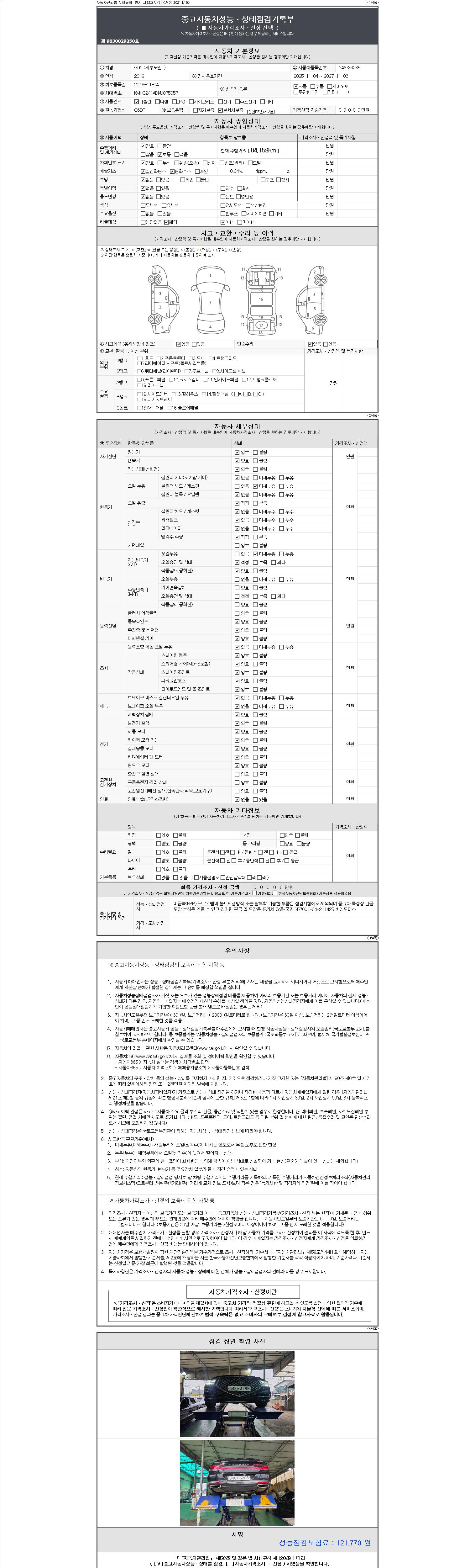 • 2. 차량 등록증이나 성능점검지 등을 상담자에게 요청및 확인하시고 사전에 미리 점검 하시기를 권유드립니다.