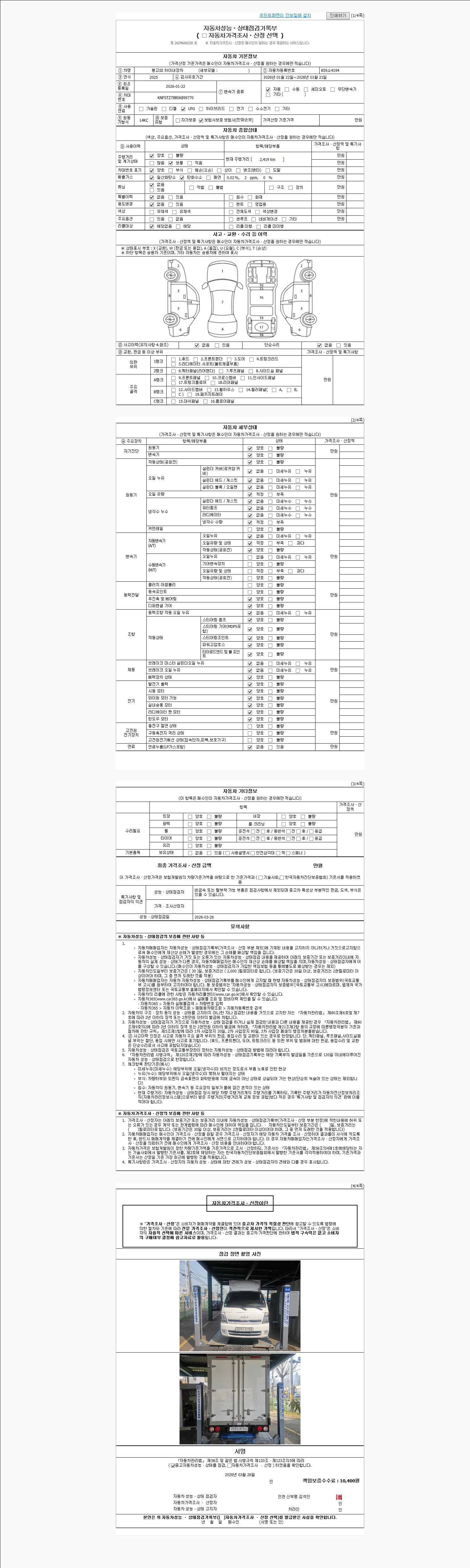 - 2. 차량 등록증이나 성능점검지 등을 상담자에게 요청및 확인하시고 사전에 미리 점검 하시기를 권유드립니다.