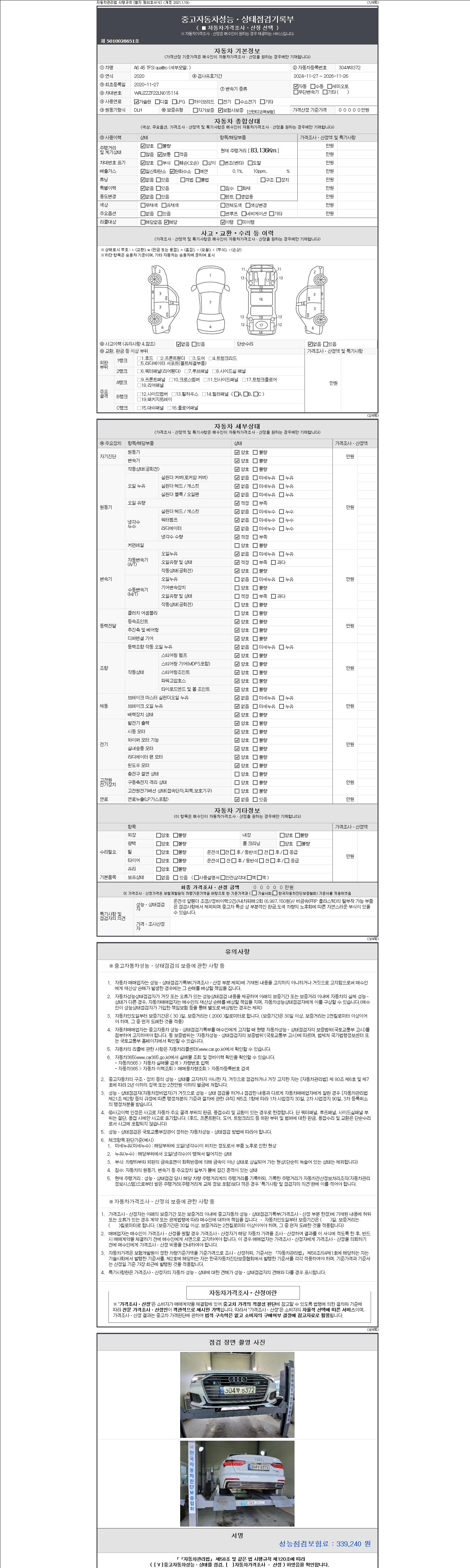 | 주행거리 | 83,122 km | 차량번호 | 304부8372 | 사고유무 | 성능기록부 참조 | 제시번호 | 제 2147483647 호 |