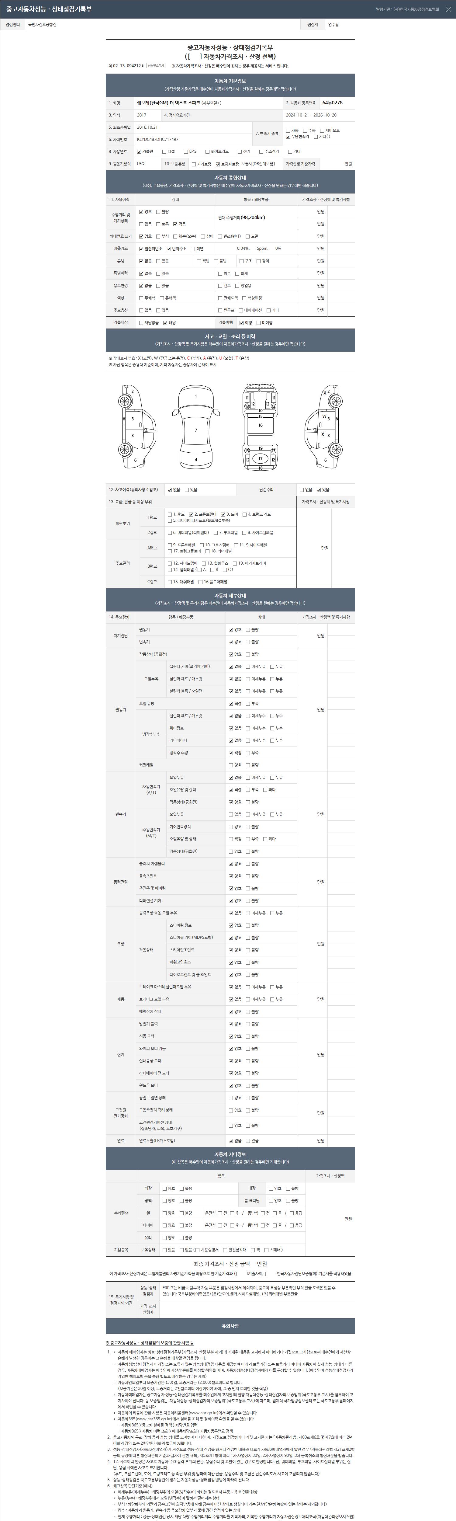 -중고자동차 매매업자를 통해 차량을 구입하실 경우 반드시 "중고자동차 성능, 상태점검 기록부"를 교뷰 받으셔야 하며, 매매업자는 반드시 의무 교부 하여야 압니다.