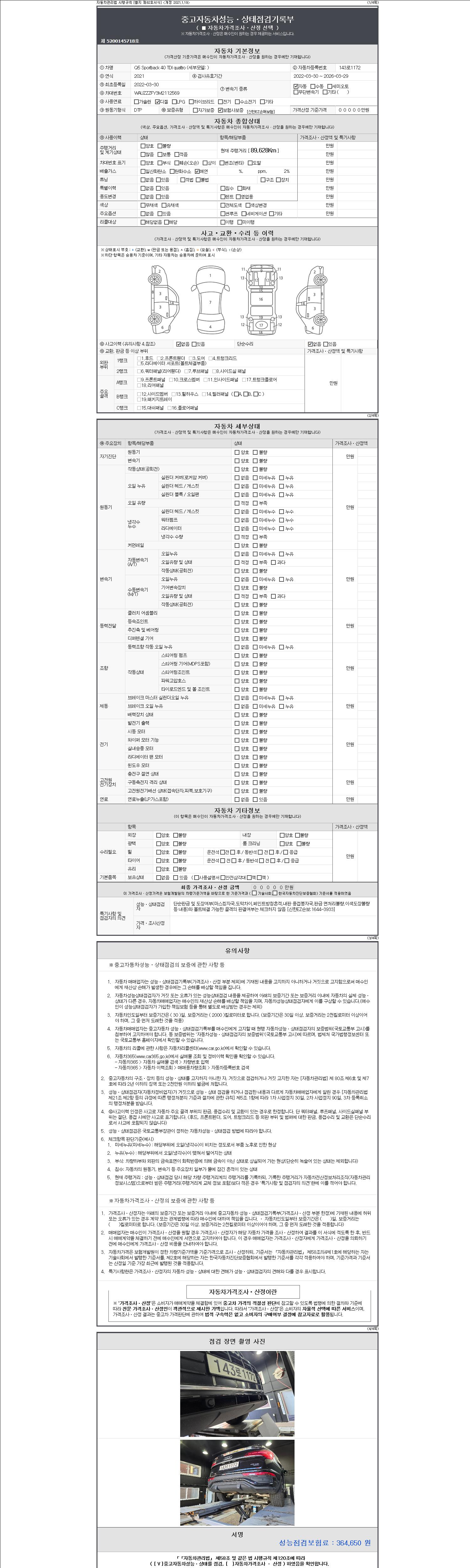 -중고자동차 매매업자를 통해 차량을 구입하실 경우 반드시 "중고자동차 성능, 상태점검 기록부"를 교뷰 받으셔야 하며, 매매업자는 반드시 의무 교부 하여야 압니다.