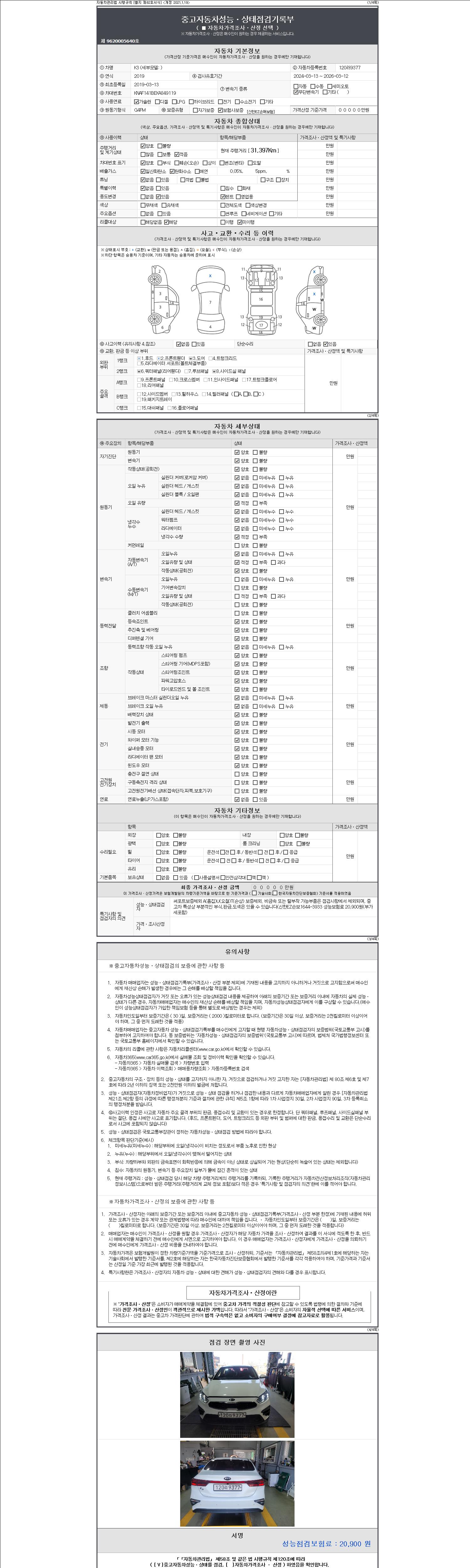 | 주행거리 | 31,397 km | 차량번호 | 120러9377 | 사고유무 | 성능기록부 참조 | 제시번호 | 제 2147483647 호 |