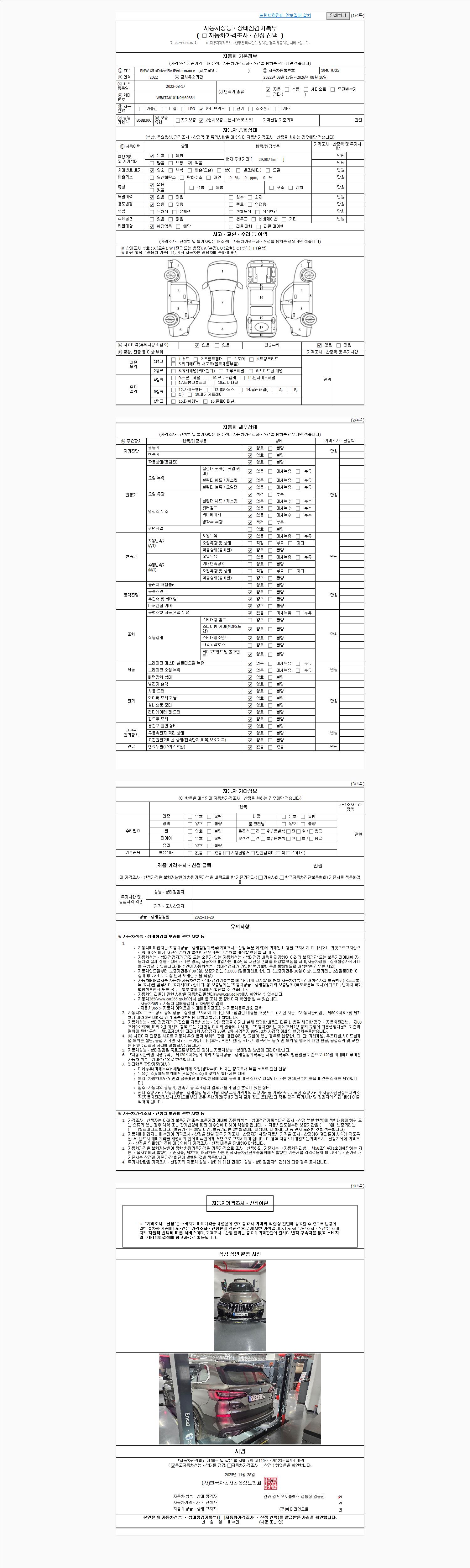 | 주행거리 | 29,007 km | 차량번호 | 194어9725 | 사고유무 | 성능기록부 참조 | 제시번호 | 제 2025162508 호 |