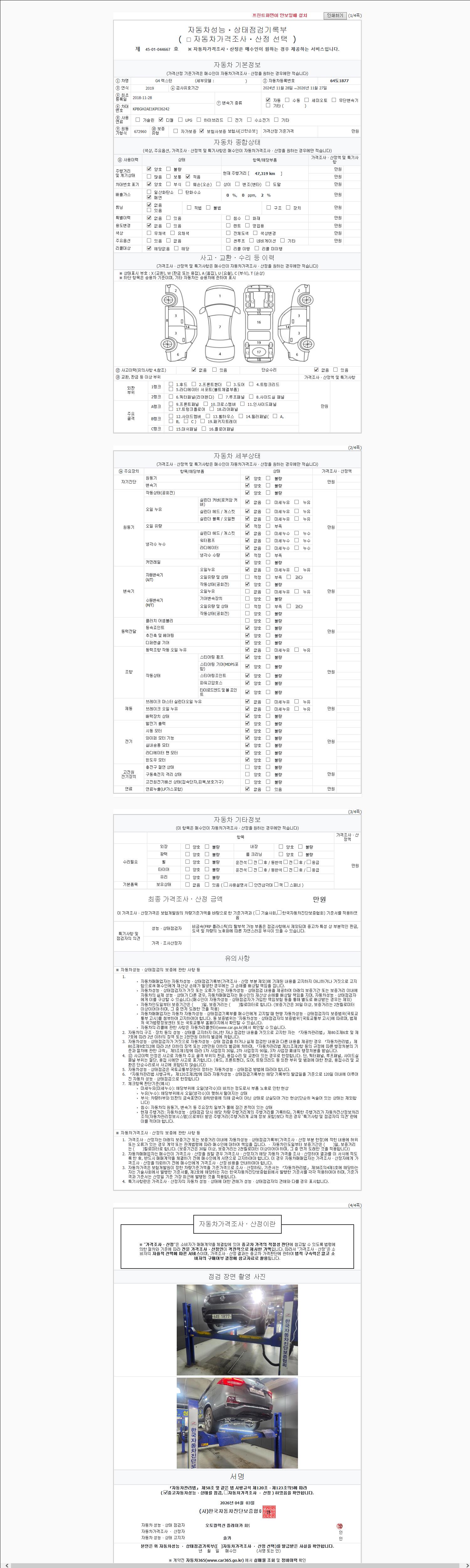 - 2. 차량 등록증이나 성능점검지 등을 상담자에게 요청및 확인하시고 사전에 미리 점검 하시기를 권유드립니다.