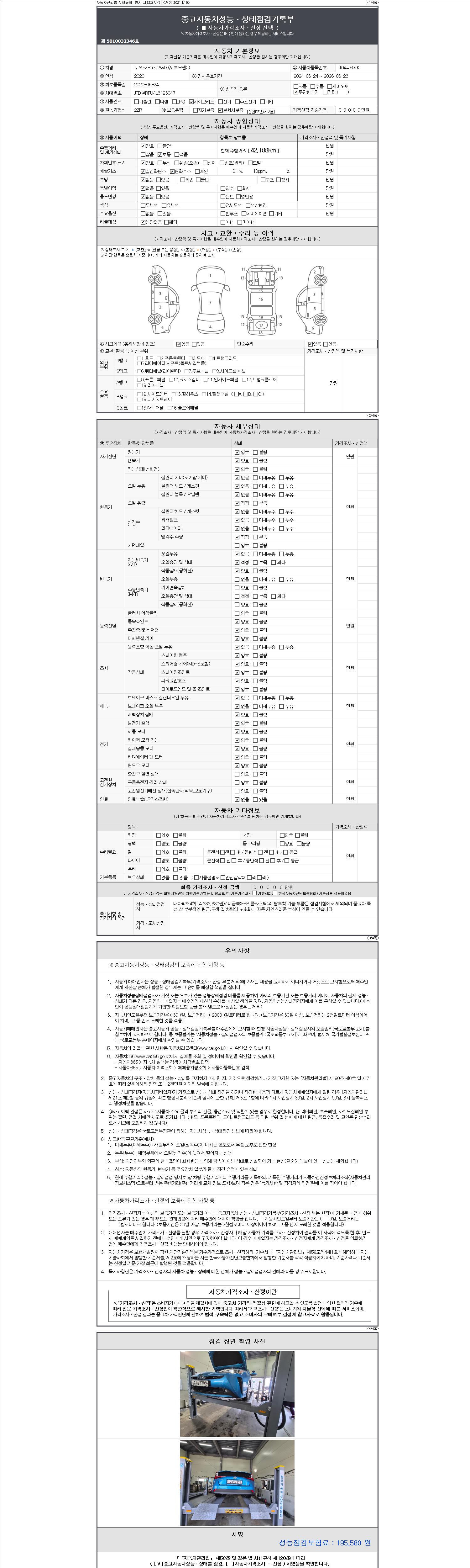 | 주행거리 | 42,188 km | 차량번호 | 104나3792 | 사고유무 | 성능기록부 참조 | 제시번호 | 제 2147483647 호 |