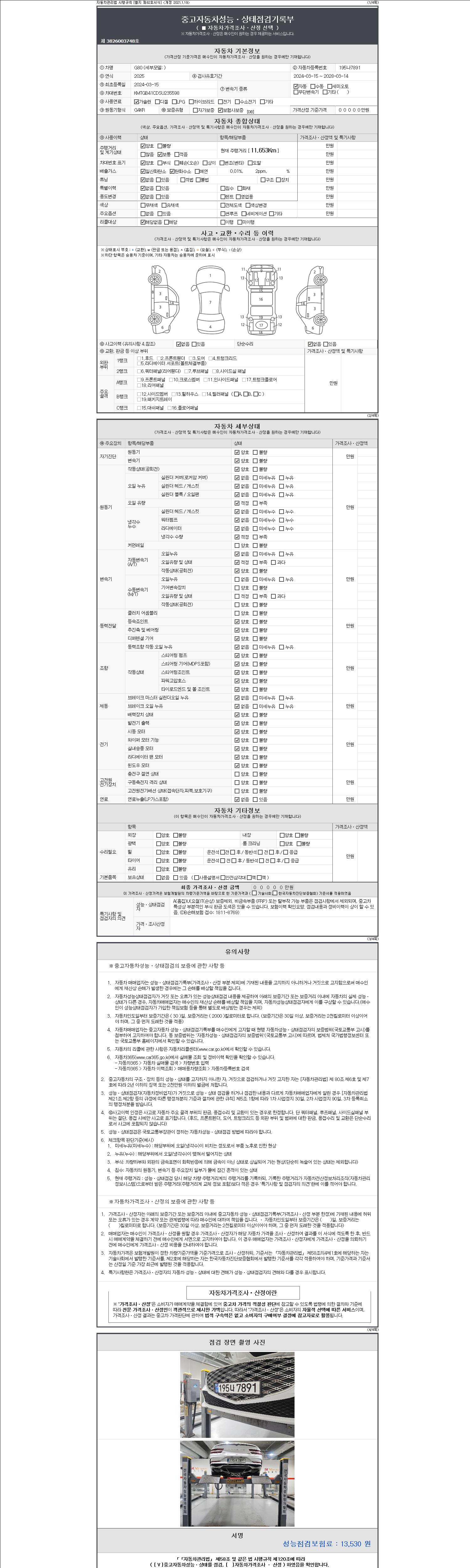 - 2. 차량 등록증이나 성능점검지 등을 상담자에게 요청및 확인하시고 사전에 미리 점검 하시기를 권유드립니다.