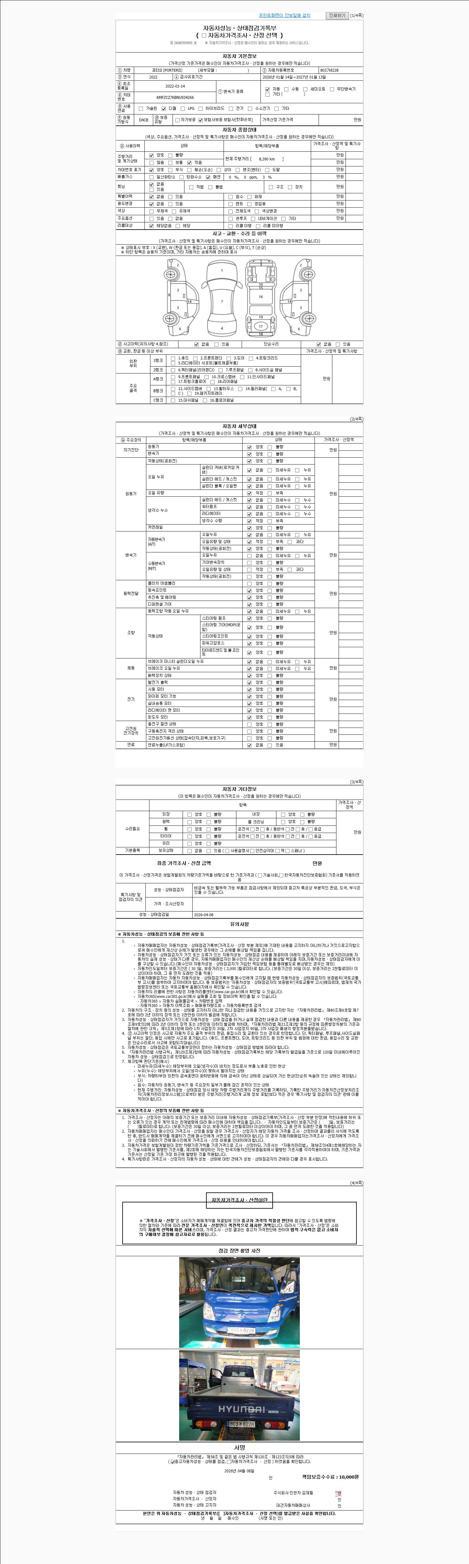 | 주행거리 | 8,390 km | 차량번호 | 803가8228 | 사고유무 | 성능기록부 참조 | 제시번호 | 제 2026018408 호 |