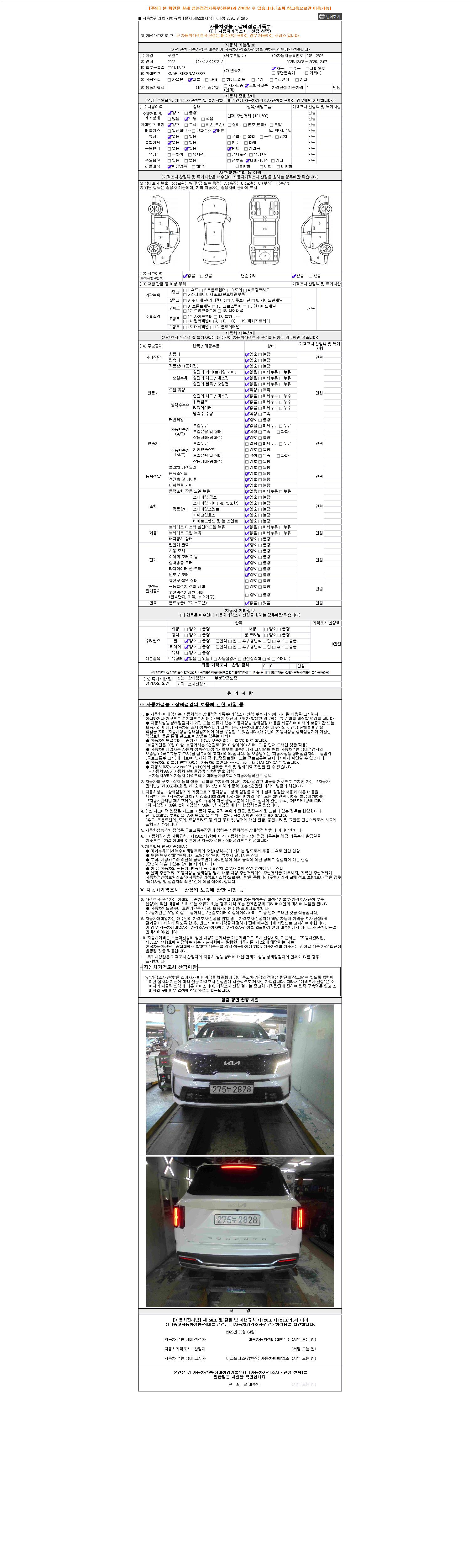 - 2. 차량 등록증이나 성능점검지 등을 상담자에게 요청및 확인하시고 사전에 미리 점검 하시기를 권유드립니다.