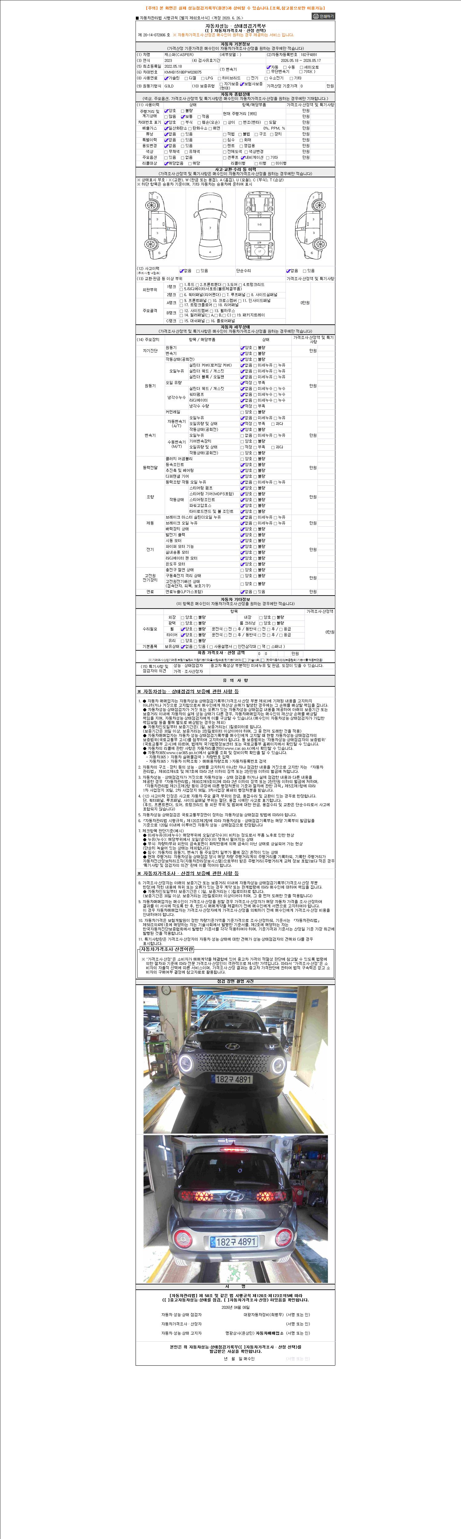 - 2. 차량 등록증이나 성능점검지 등을 상담자에게 요청및 확인하시고 사전에 미리 점검 하시기를 권유드립니다.