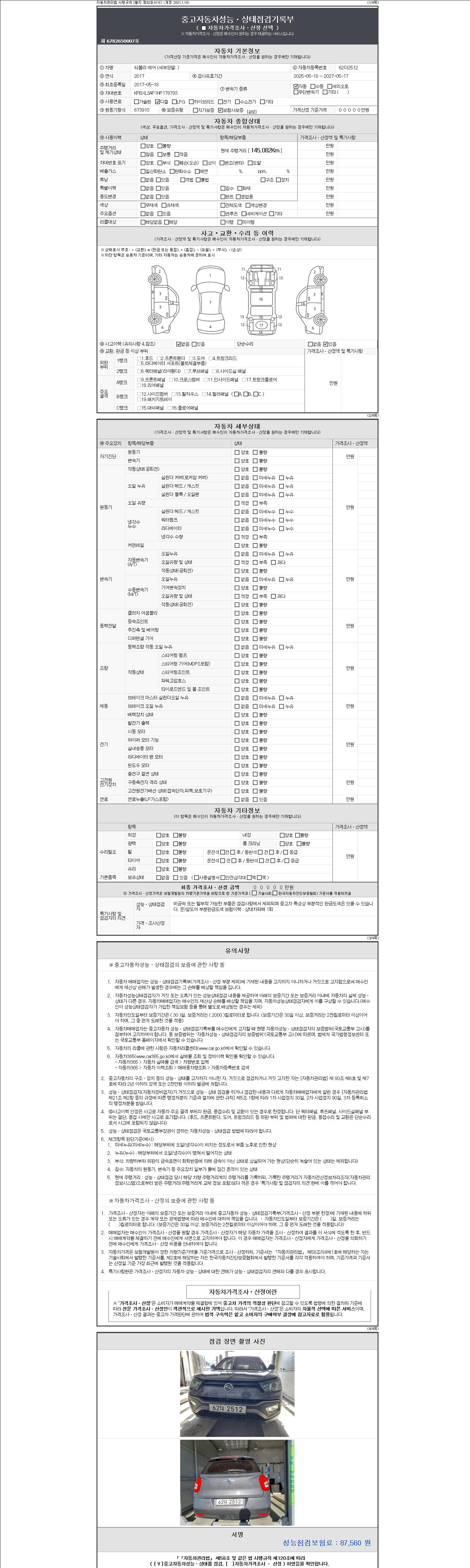 -중고자동차 매매업자를 통해 차량을 구입하실 경우 반드시 "중고자동차 성능, 상태점검 기록부"를 교뷰 받으셔야 하며, 매매업자는 반드시 의무 교부 하여야 압니다.