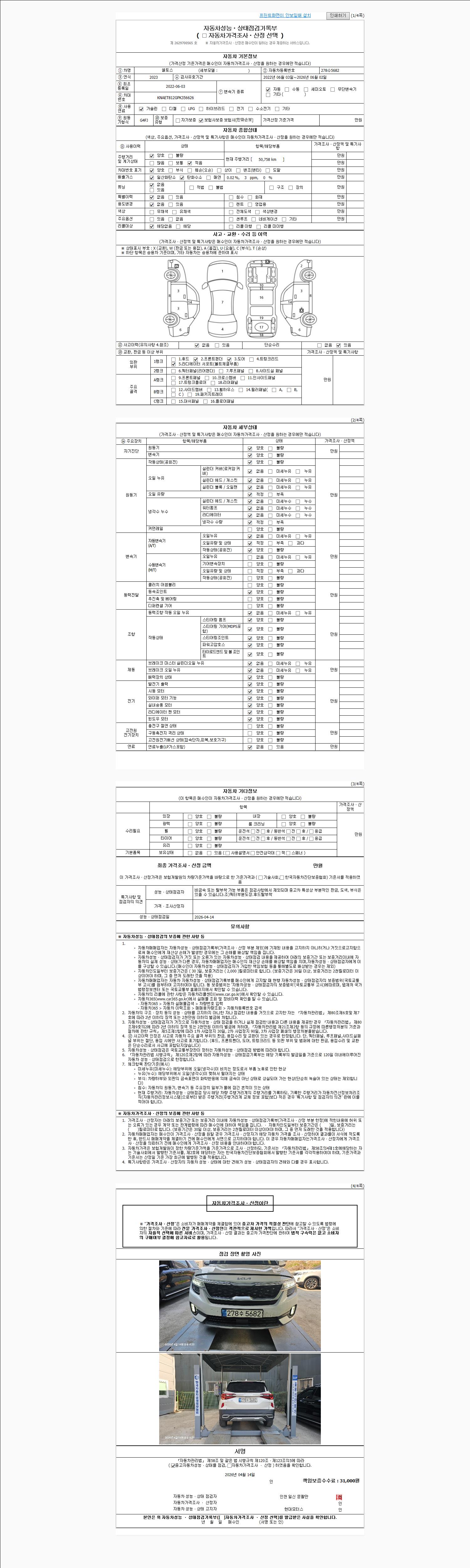 - 2. 차량 등록증이나 성능점검지 등을 상담자에게 요청및 확인하시고 사전에 미리 점검 하시기를 권유드립니다.
