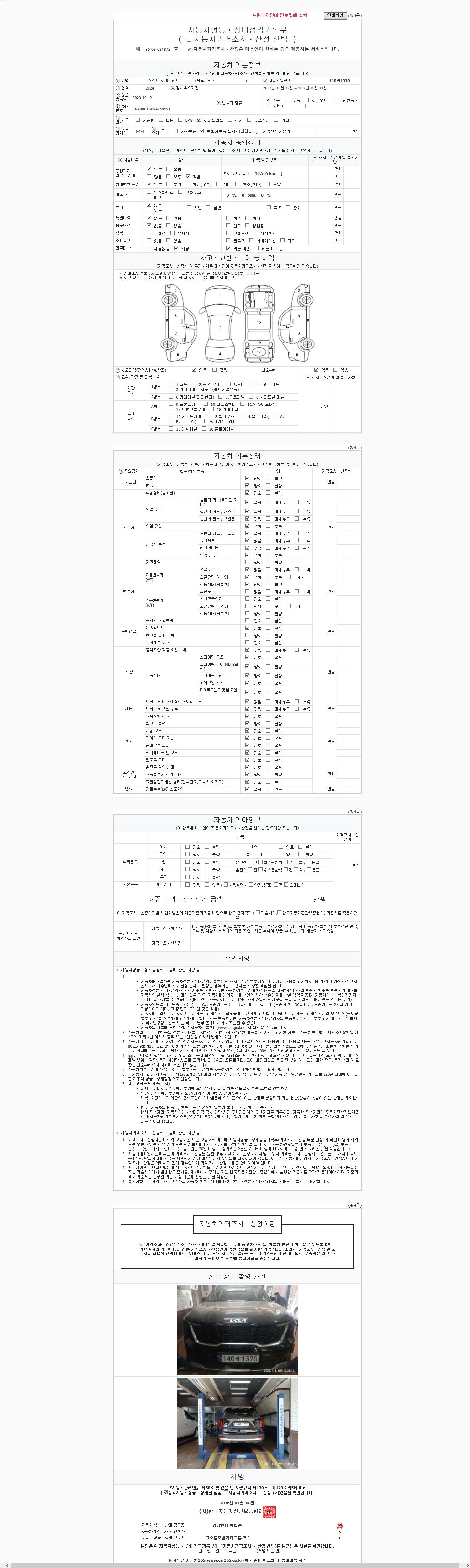 | 주행거리 | 19,507 km | 차량번호 | 140라1370 | 사고유무 | 성능기록부 참조 | 제시번호 | 제 2147483647 호 |