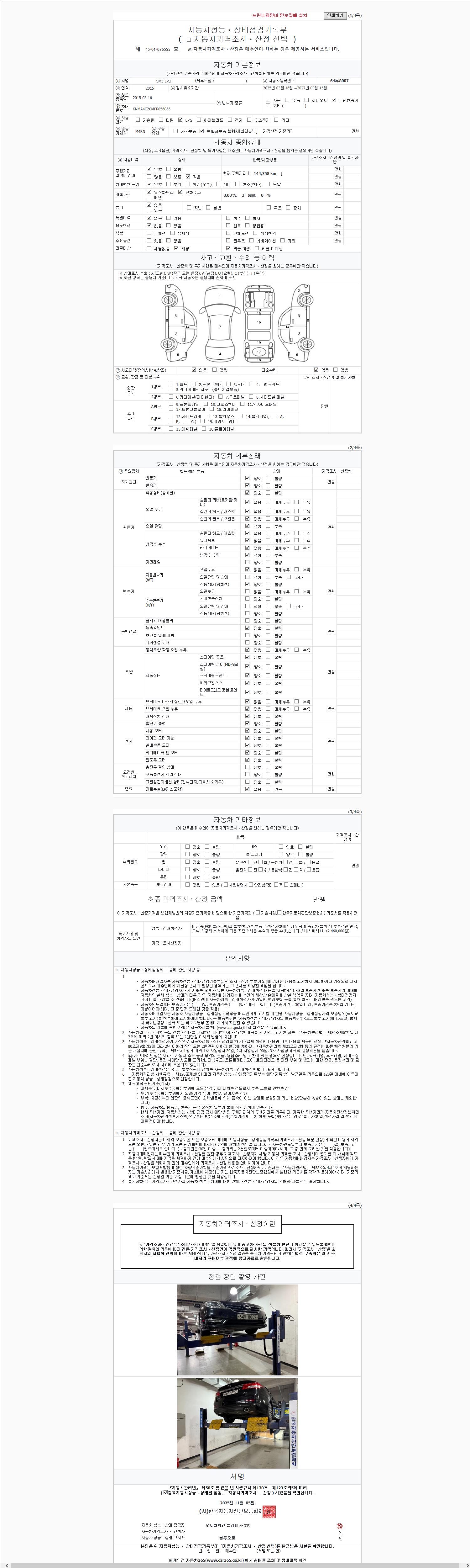 - 2. 차량 등록증이나 성능점검지 등을 상담자에게 요청및 확인하시고 사전에 미리 점검 하시기를 권유드립니다.
