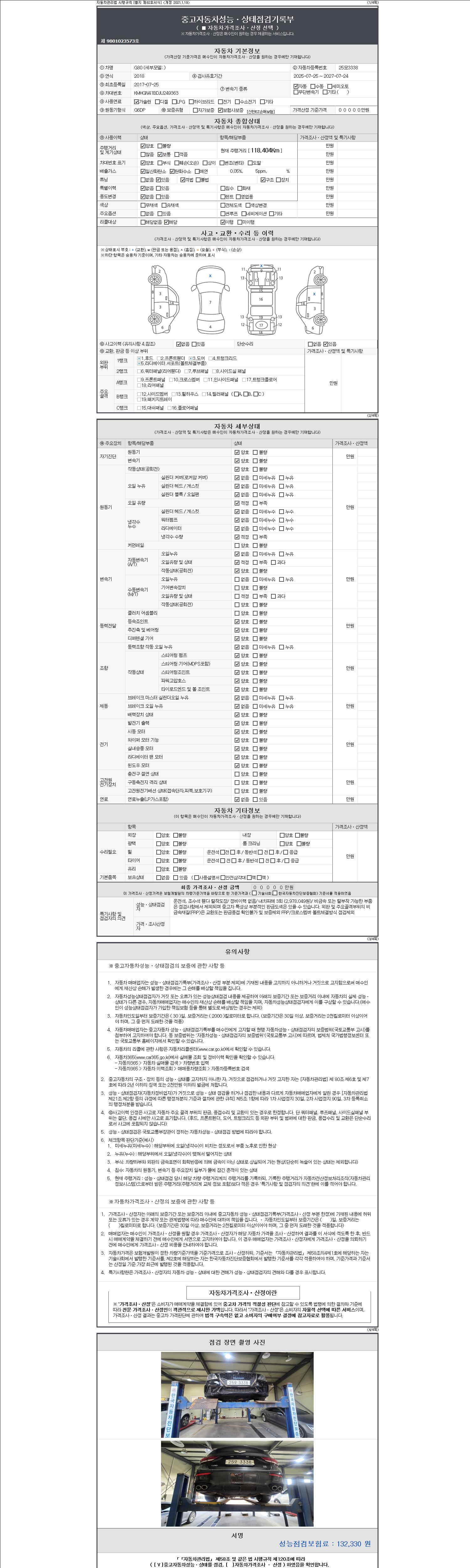 - 2. 차량 등록증이나 성능점검지 등을 상담자에게 요청및 확인하시고 사전에 미리 점검 하시기를 권유드립니다.