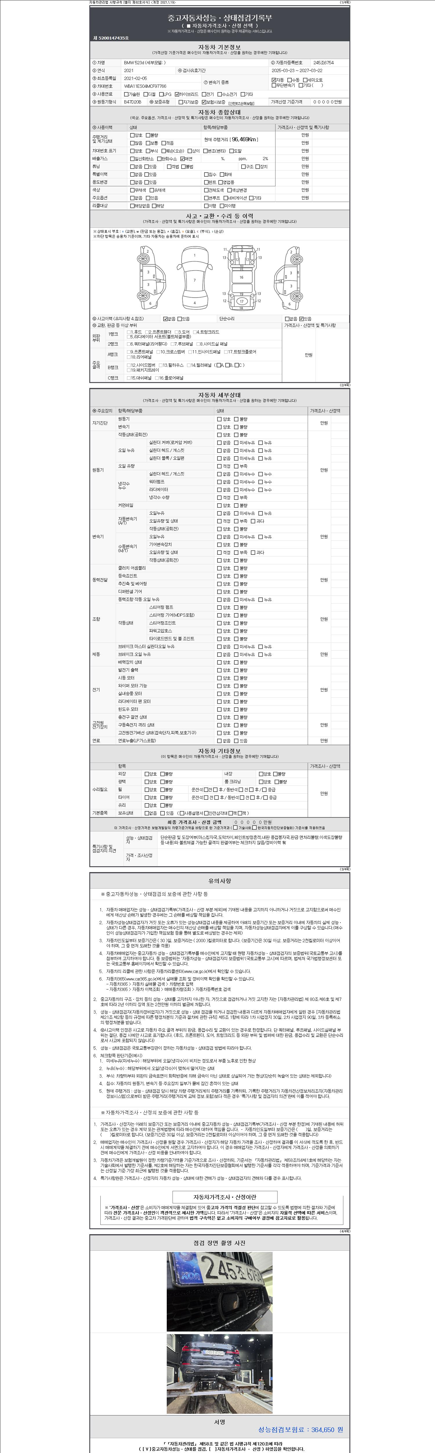 -중고자동차 매매업자를 통해 차량을 구입하실 경우 반드시 "중고자동차 성능, 상태점검 기록부"를 교뷰 받으셔야 하며, 매매업자는 반드시 의무 교부 하여야 압니다.
