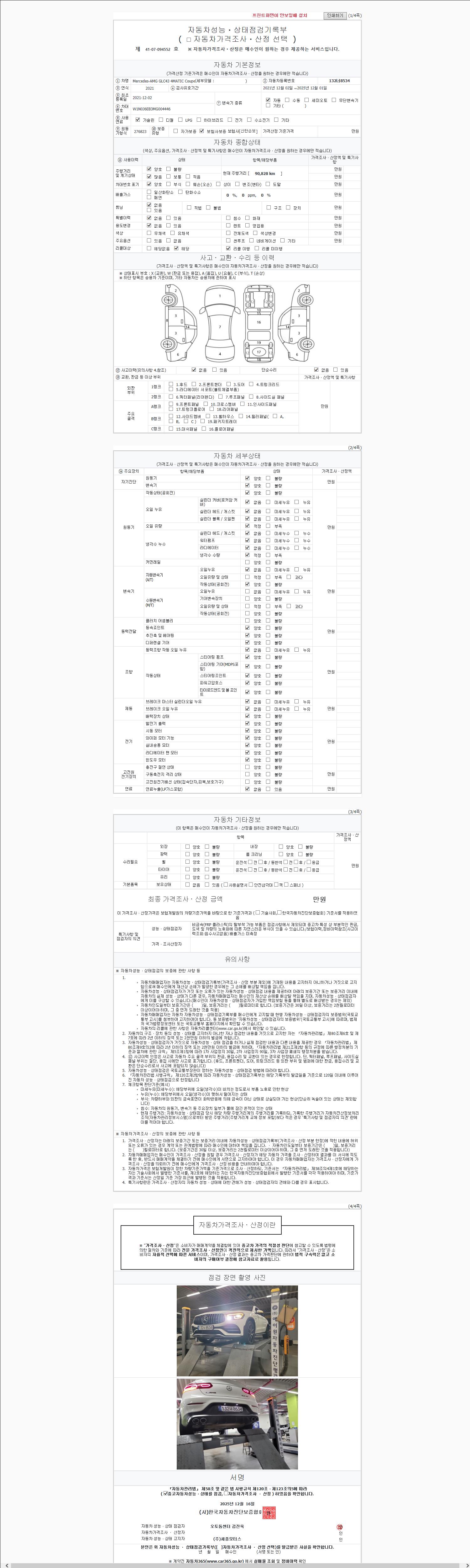 - 사고유무 : 성능기록부 참조