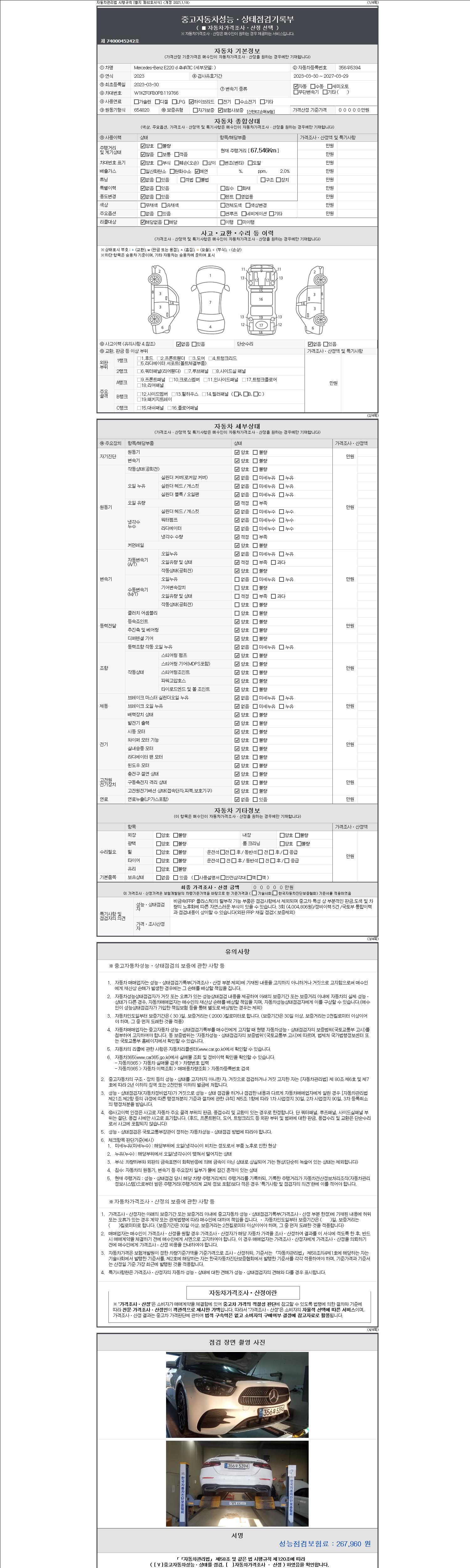 | 주행거리 | 67,546 km | 차량번호 | 356우5394 | 사고유무 | 성능기록부 참조 | 제시번호 | 제 2147483647 호 |