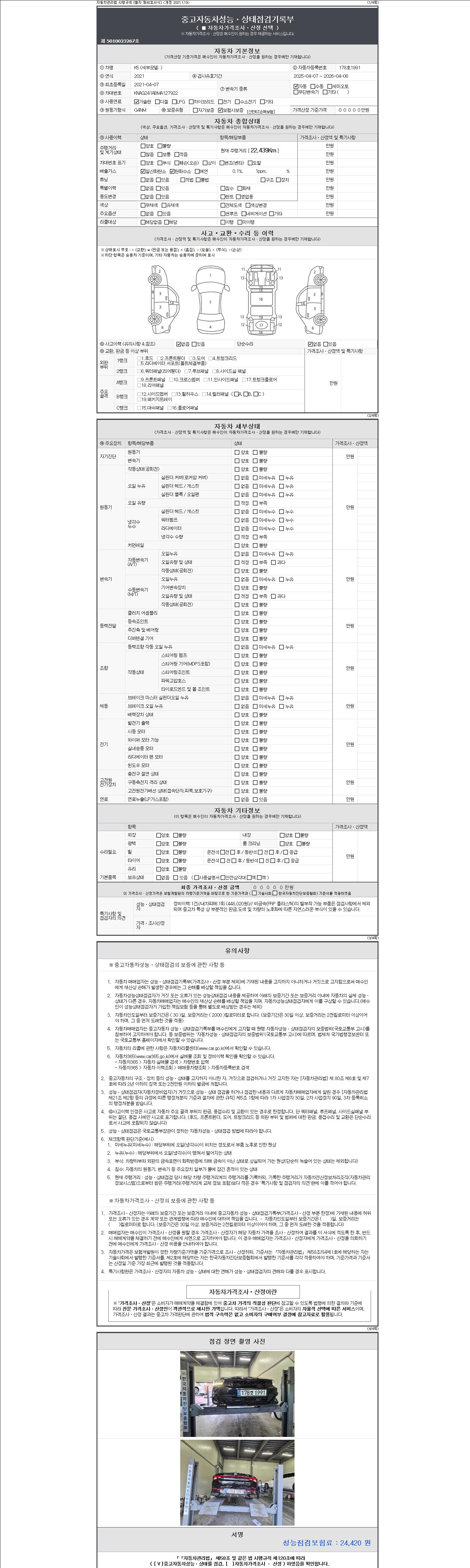 - 사고유무 : 성능기록부 참조
