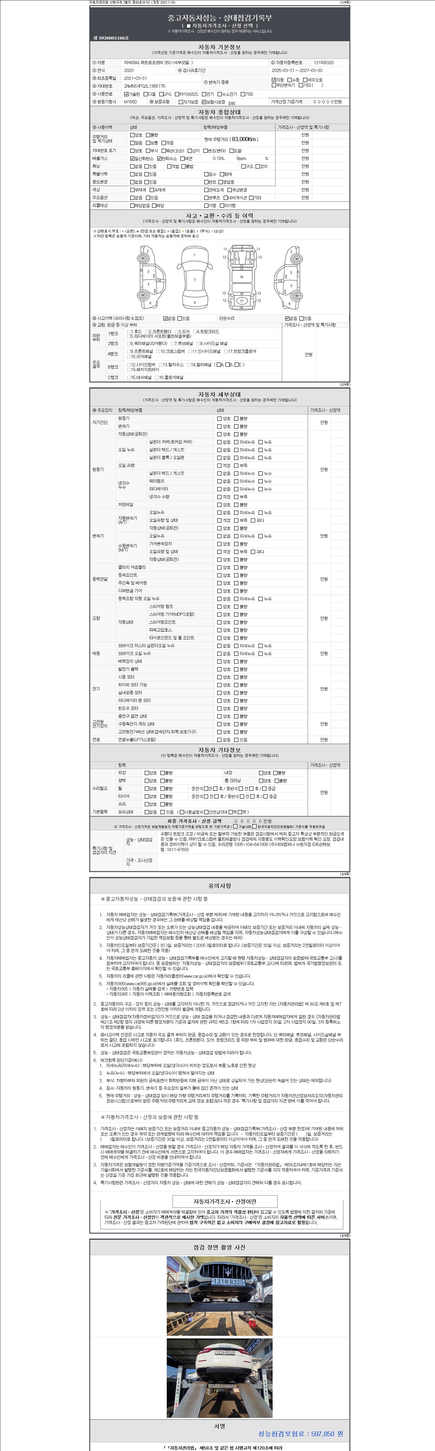 -중고자동차 매매업자를 통해 차량을 구입하실 경우 반드시 "중고자동차 성능, 상태점검 기록부"를 교뷰 받으셔야 하며, 매매업자는 반드시 의무 교부 하여야 압니다.