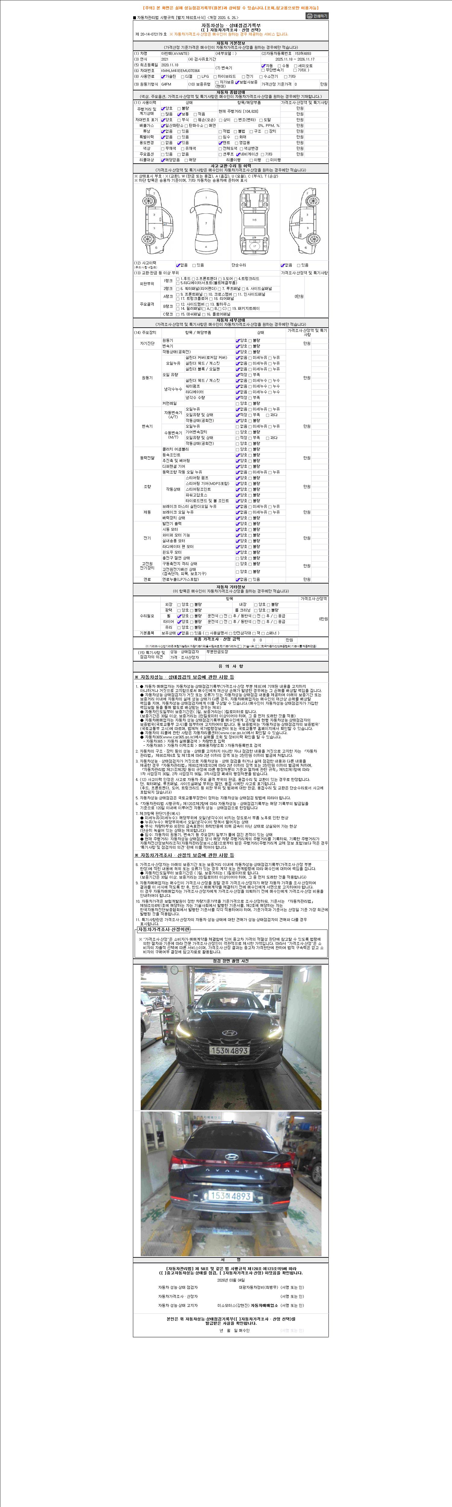 자동차관리법 시행규칙 제120조의 규정에 따라 별지 제 82호서식 《중고자동차 성능, 상태점검 기록부》를 발행한 성능, 상태점검자 및 매매자는 아래의 보증기간 또는 보증거리 이내의 중고자동차, 성능점검 기록부에 기재된 내용과 자동차의 실제 성능, 상태가 다른 경우 계약 또는 관계법령에 따라 매수인에 대하여 책임을 집니다.