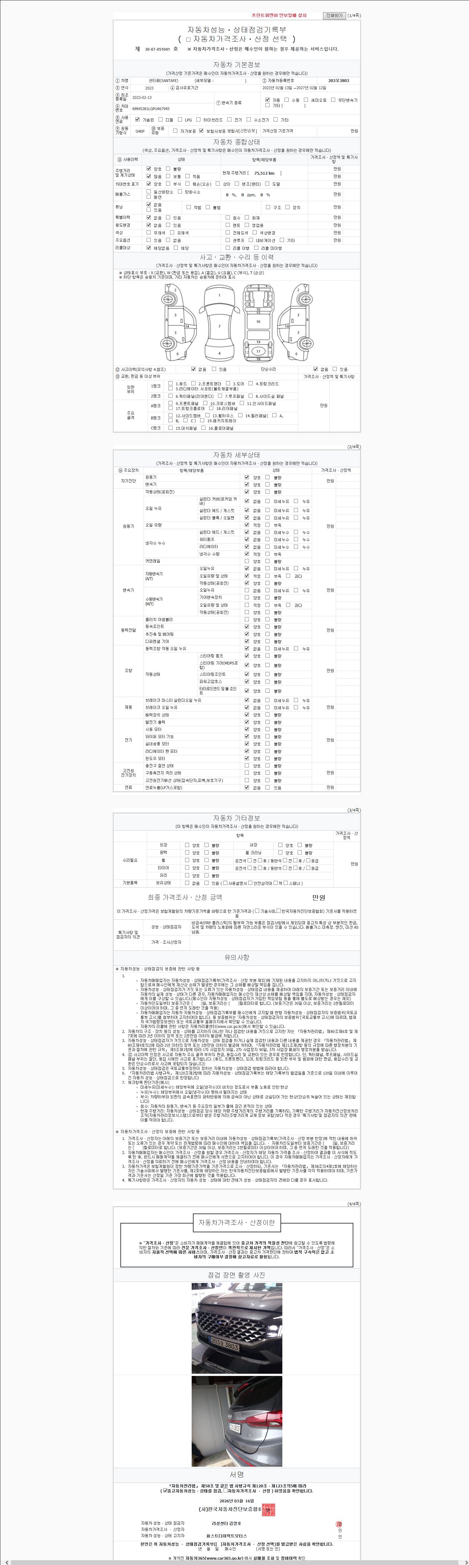 - 2. 차량 등록증이나 성능점검지 등을 상담자에게 요청및 확인하시고 사전에 미리 점검 하시기를 권유드립니다.