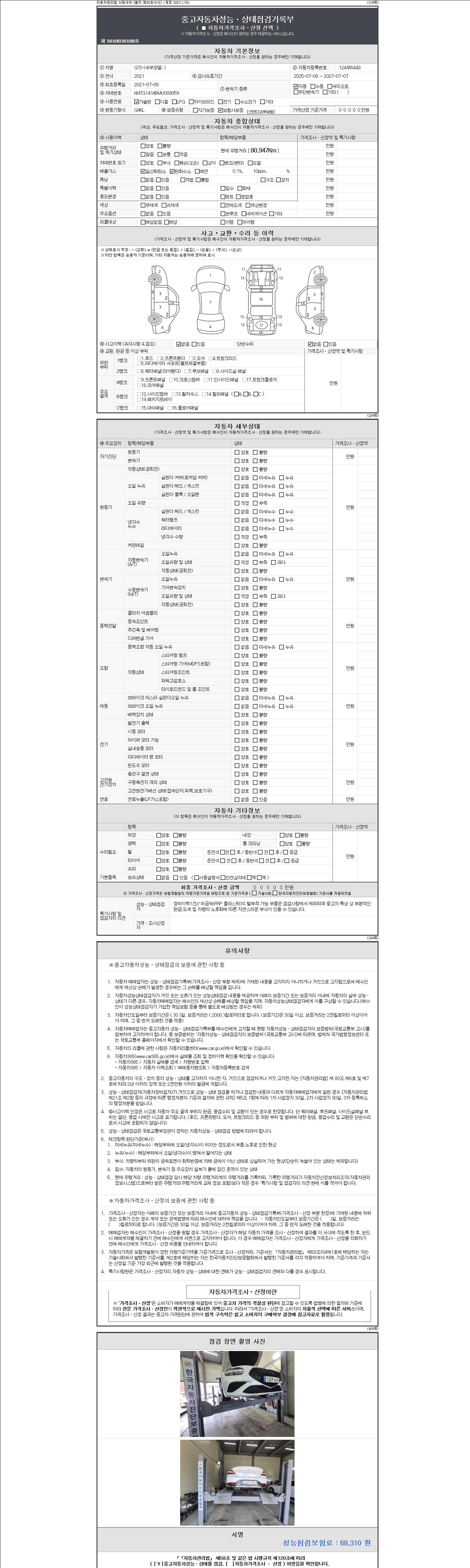 - 2. 차량 등록증이나 성능점검지 등을 상담자에게 요청및 확인하시고 사전에 미리 점검 하시기를 권유드립니다.