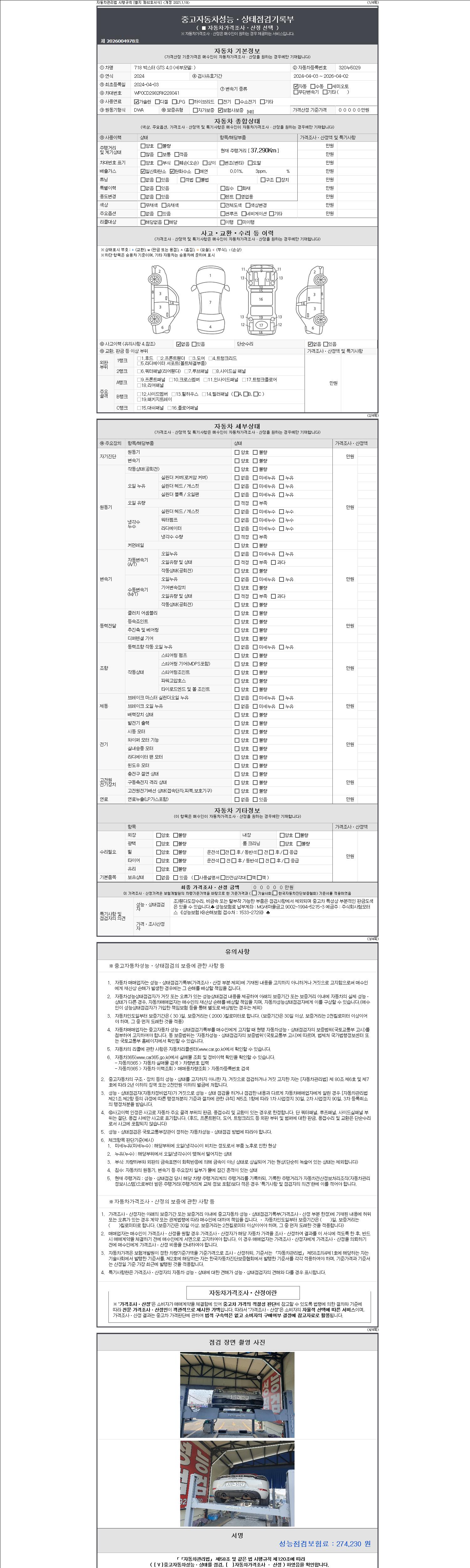 - 사고유무 : 성능기록부 참조