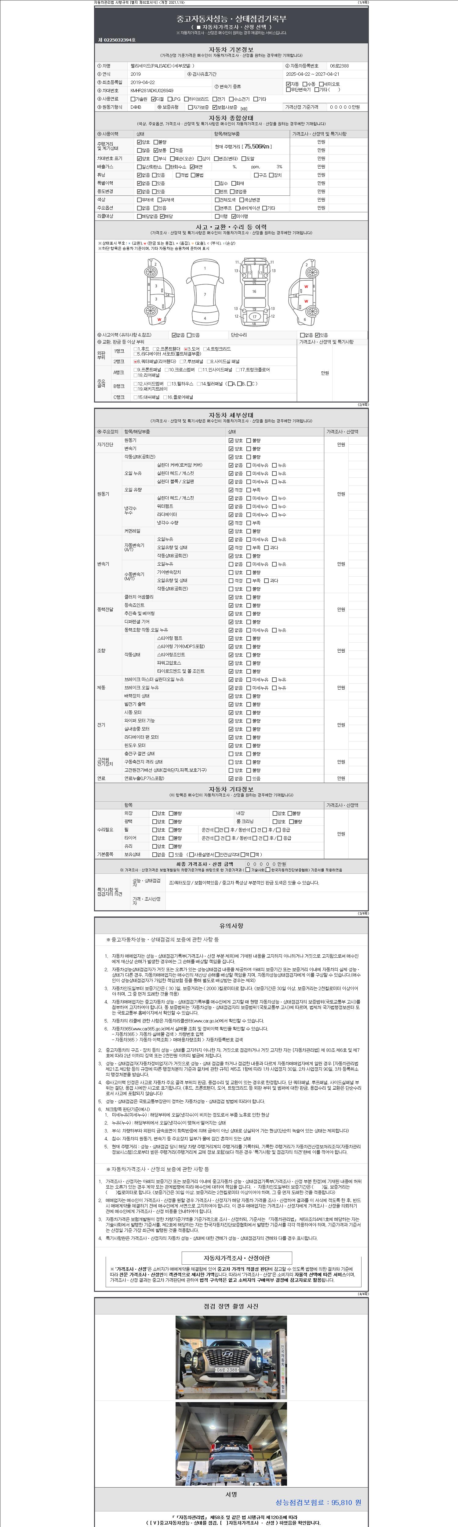 | 주행거리 | 75,506 km | 차량번호 | 06로2388 | 사고유무 | 성능기록부 참조 | 제시번호 | 제 2147483647 호 |