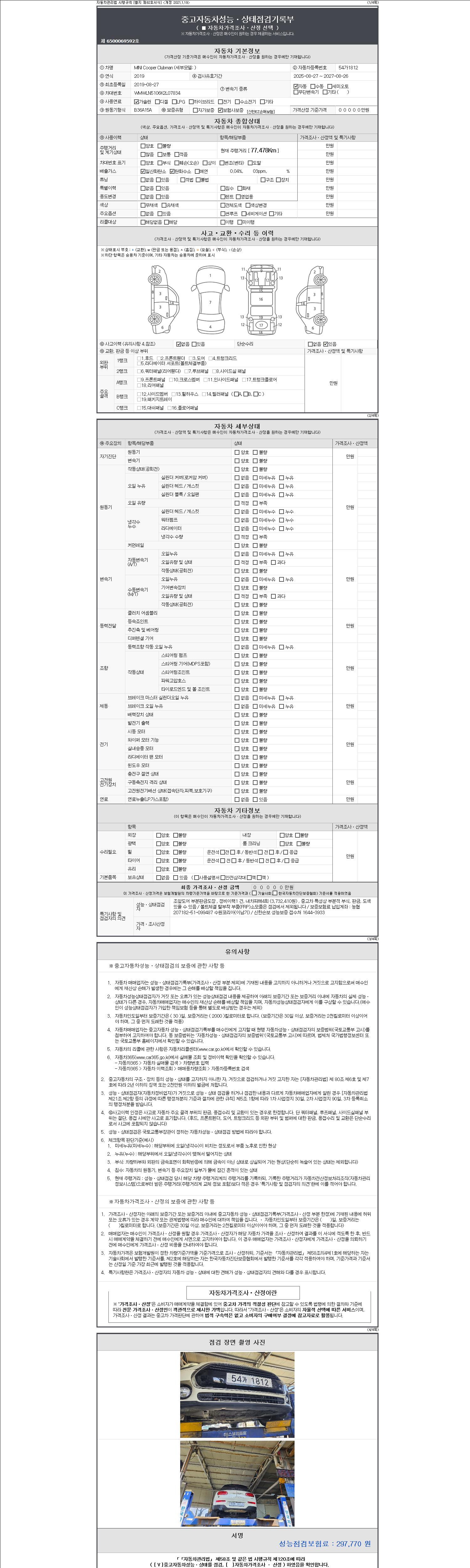 -중고자동차 매매업자를 통해 차량을 구입하실 경우 반드시 "중고자동차 성능, 상태점검 기록부"를 교뷰 받으셔야 하며, 매매업자는 반드시 의무 교부 하여야 압니다.