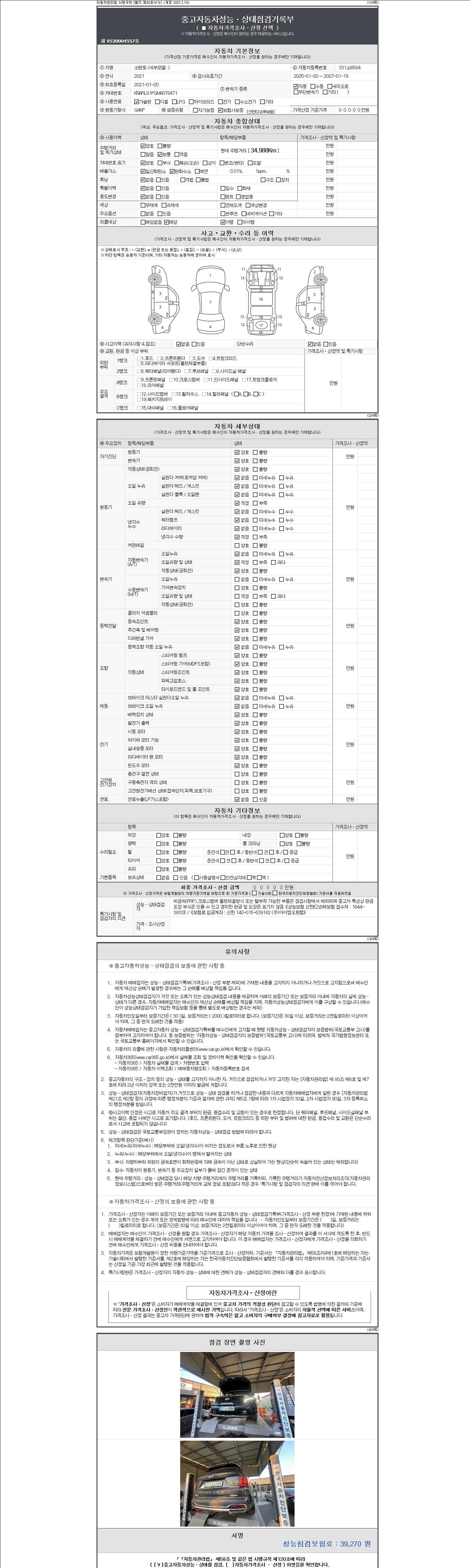 | 주행거리 | 34,988 km | 차량번호 | 331소6584 | 사고유무 | 성능기록부 참조 | 제시번호 | 제 2147483647 호 |