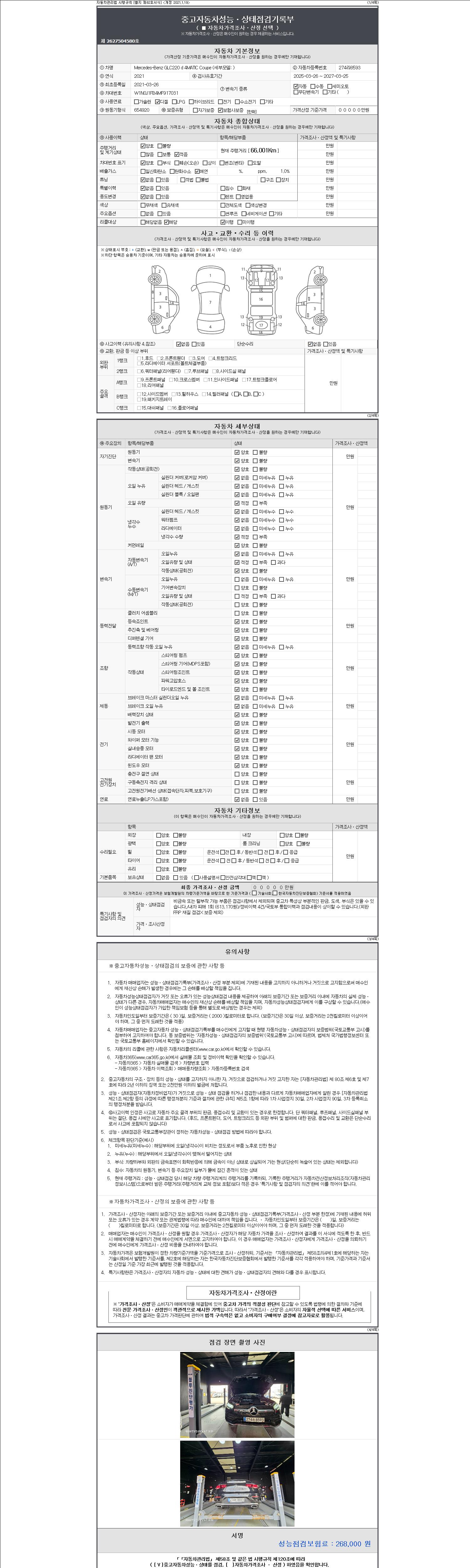 • 2. 차량 등록증이나 성능점검지 등을 상담자에게 요청및 확인하시고 사전에 미리 점검 하시기를 권유드립니다.