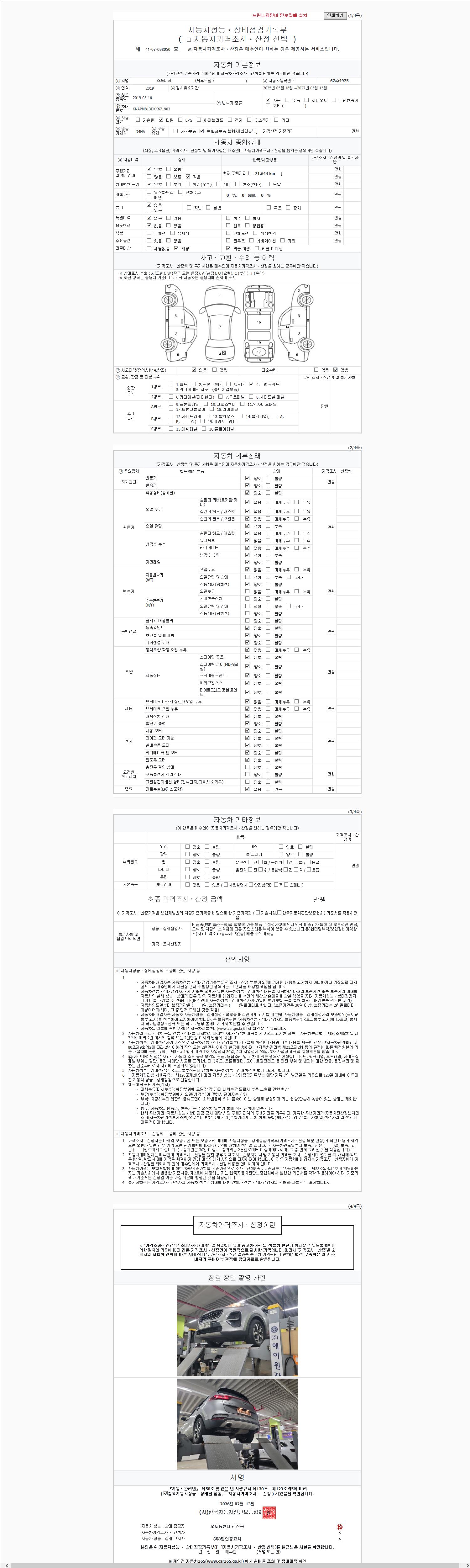 | 주행거리 | 71,644 km | 차량번호 | 67수4975 | 사고유무 | 성능기록부 참조 | 제시번호 | 제 2147483647 호 |