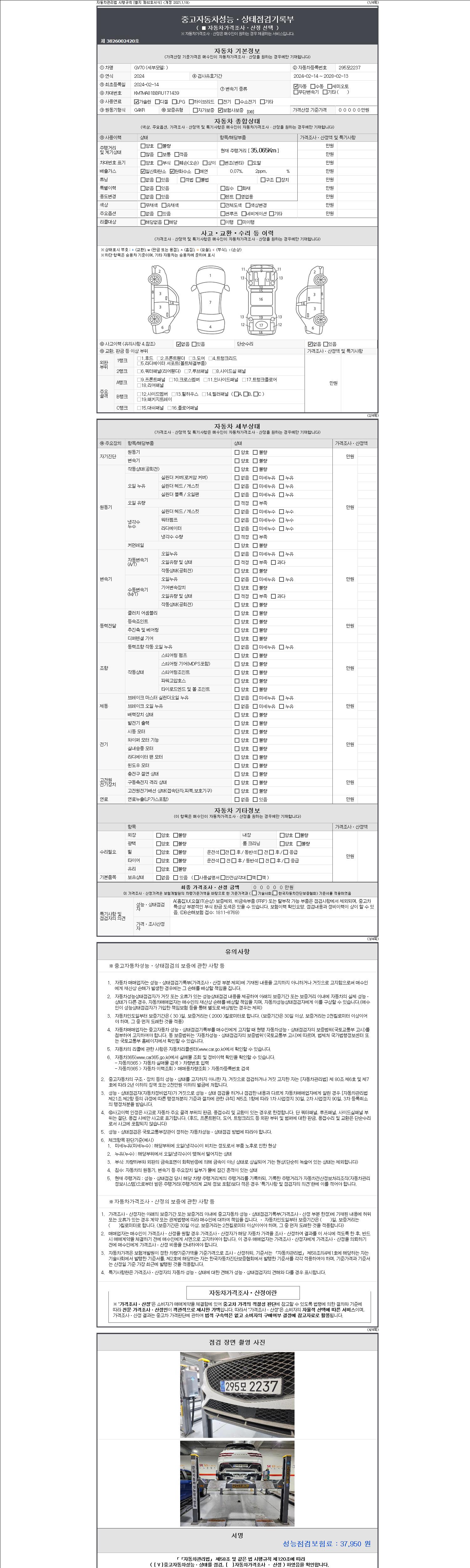 | 주행거리 | 35,065 km | 차량번호 | 295모2237 | 사고유무 | 성능기록부 참조 | 제시번호 | 제 2147483647 호 |